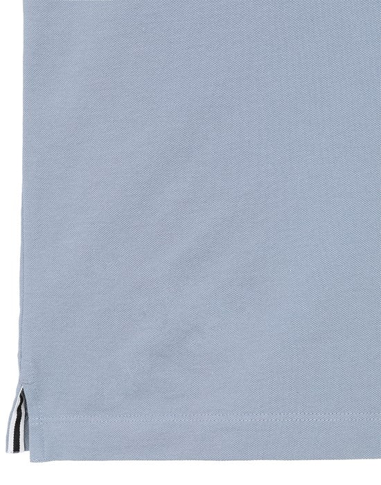 Polo à manches courtes en piqué extensible. Col côtelé avec deux bandes parallèles de couleur contrastante. Fermeture du col par deux boutons. Logo Stone Island Compass patch sur la poitrine. Bords des manches côtelés, avec deux bandes parallèles de couleur contrastante. Fentes latérales au bas des manches, avec bande intérieure appliquée.