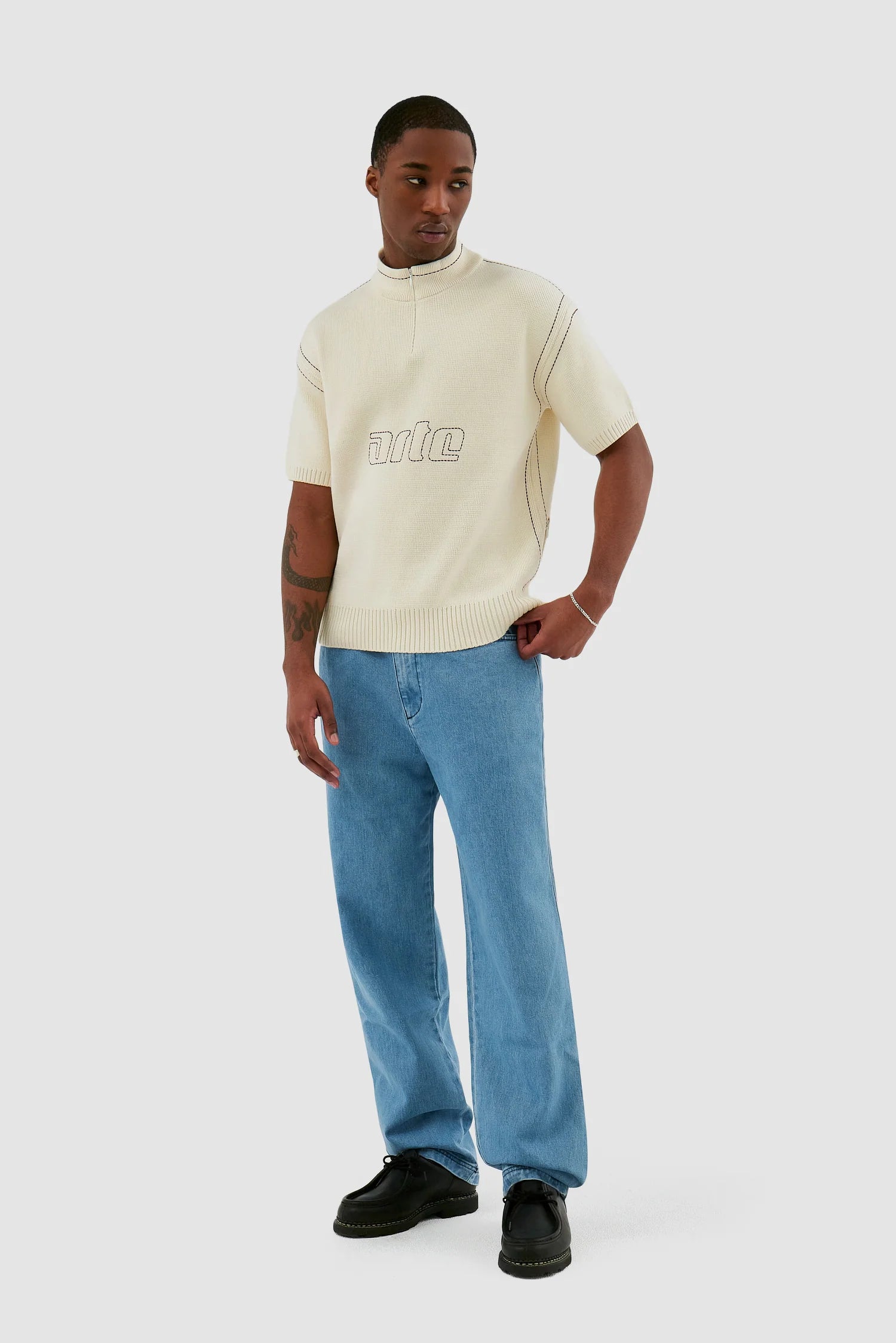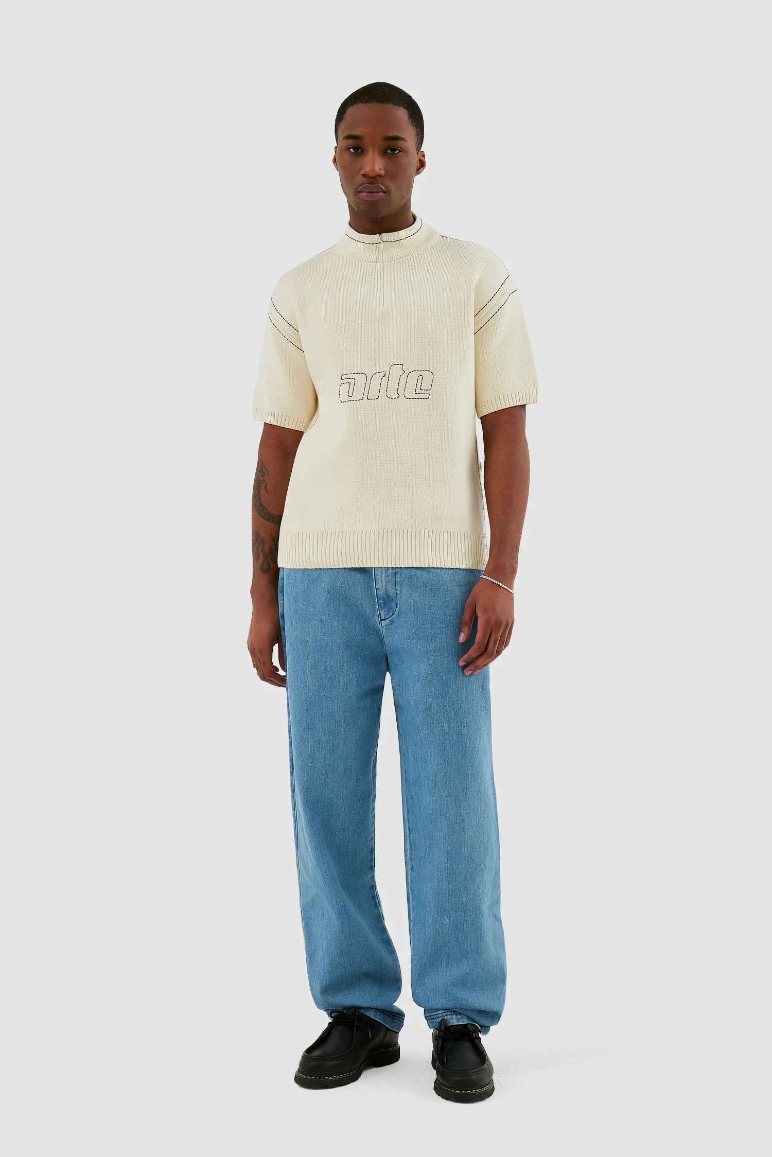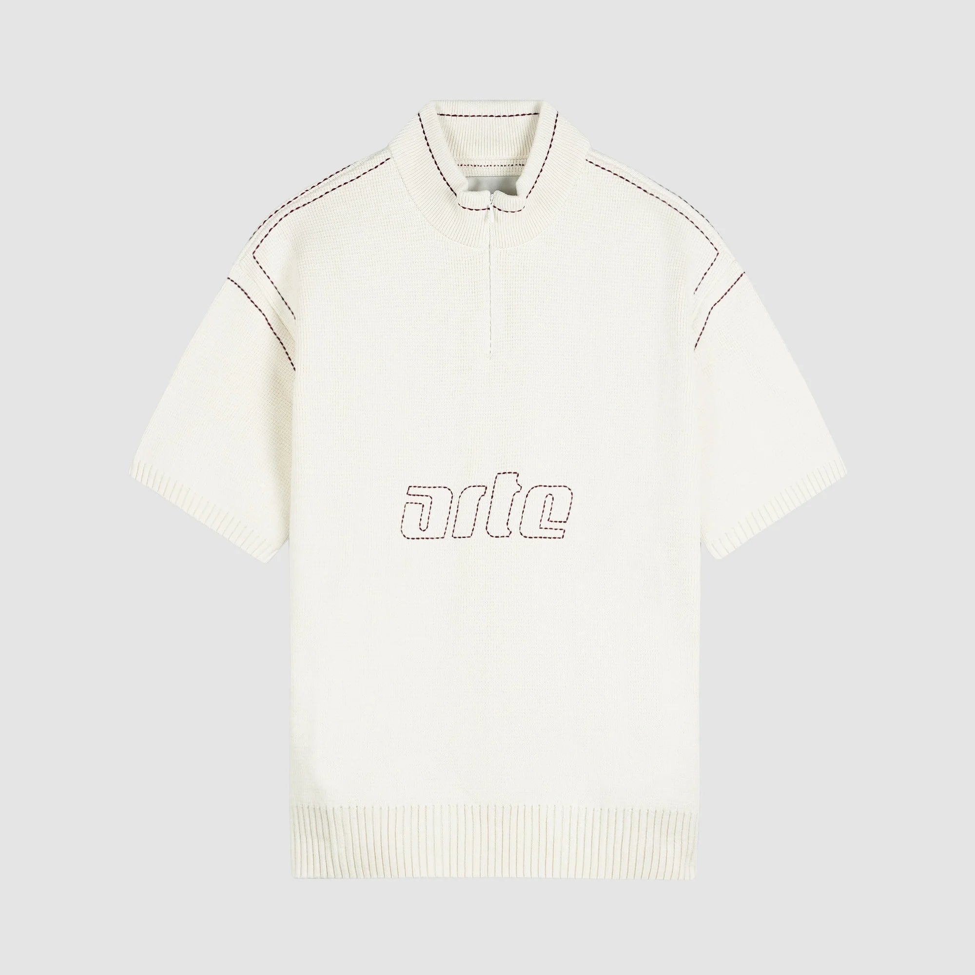 La chemise Kane Logo Knit en crème est un ajout unique à votre garde-robe en tricot. Fabriquée en coton de qualité supérieure, cette chemise en tricot est à la fois respirante et confortable. Elle se présente sous la forme d'un quart de fermeture éclair et se termine par des coutures contrastées de couleur crème. Le logo Arte de cette saison est brodé sur le devant.