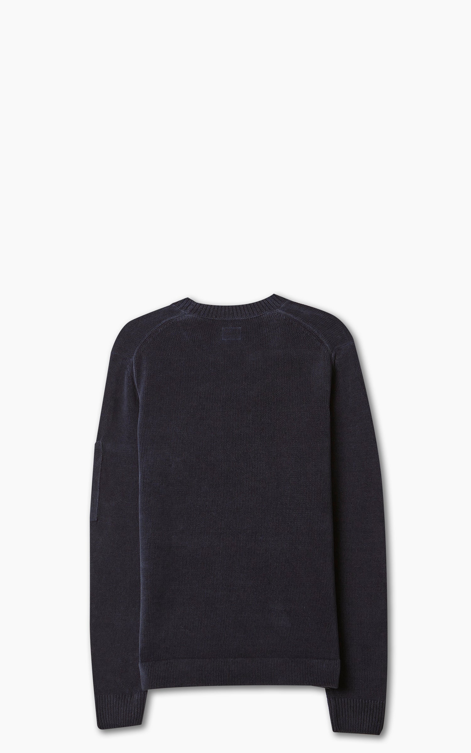 Style : Tricot à col ras du cou en coton chenille - Coupe : Coupe régulière - Couleur : Marine - Matière : 100% coton - En coton chenille extensible - Poids moyen - Pull en maille - Lentille sur la manche - Poche sur la manche - Toucher doux - Col, poignets et ourlet côtelés
