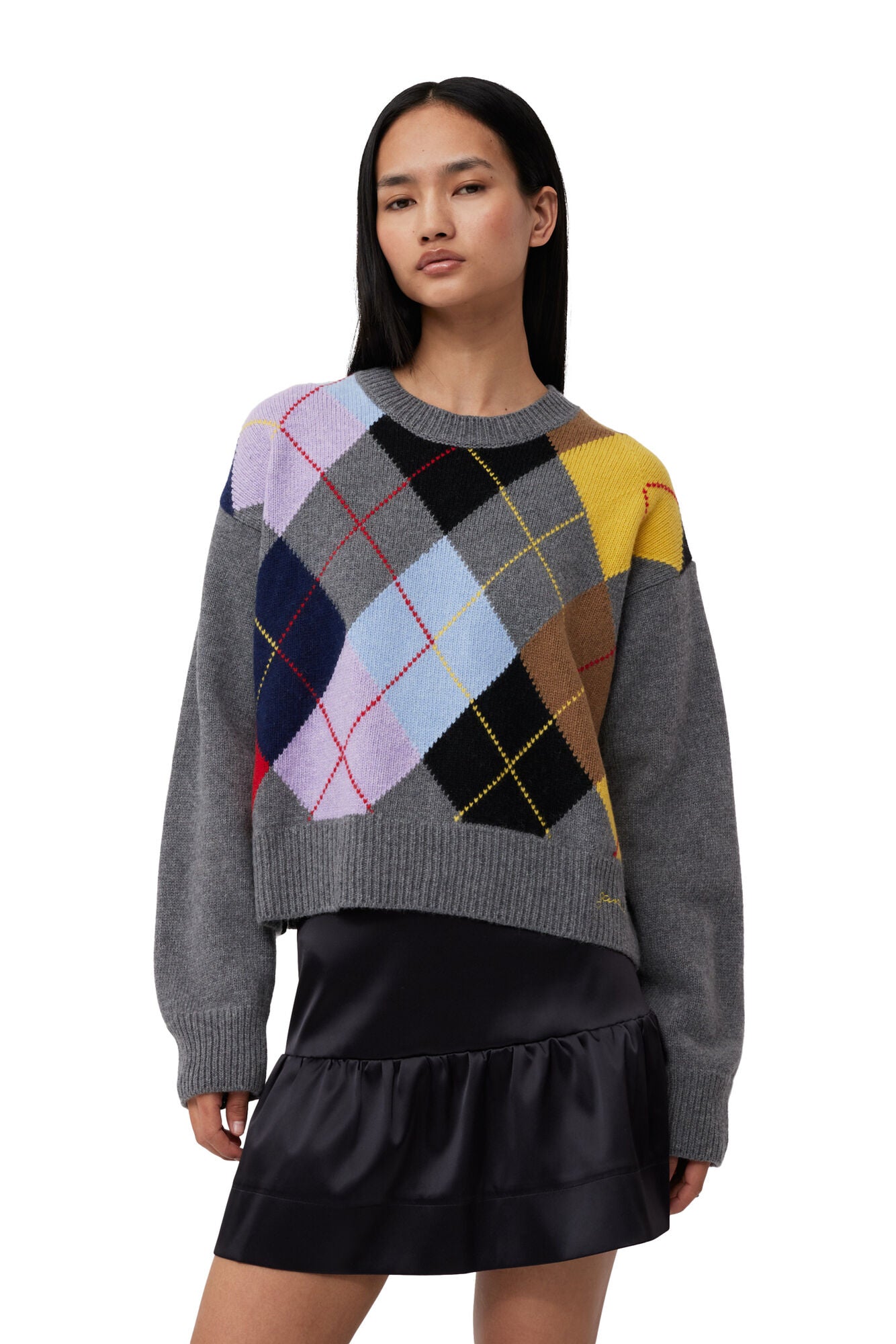 PULL HARLEQUIN WOOL MIX OVERSIZED O-NECK Ganni