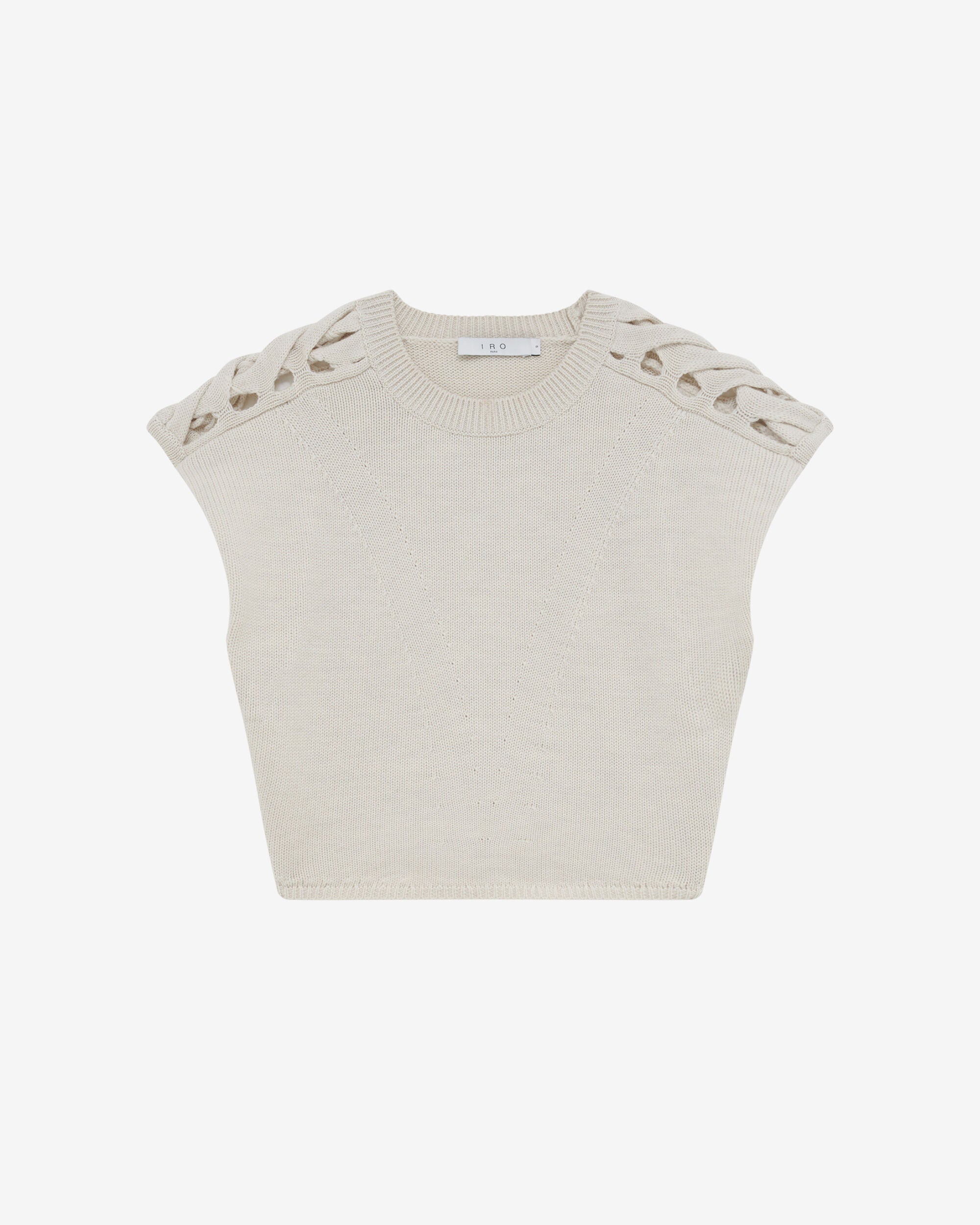 Pull sans manches• Col rond• Coupe ajustée• Détail de tresses sur les épaules• Matière principale : 100% laine
