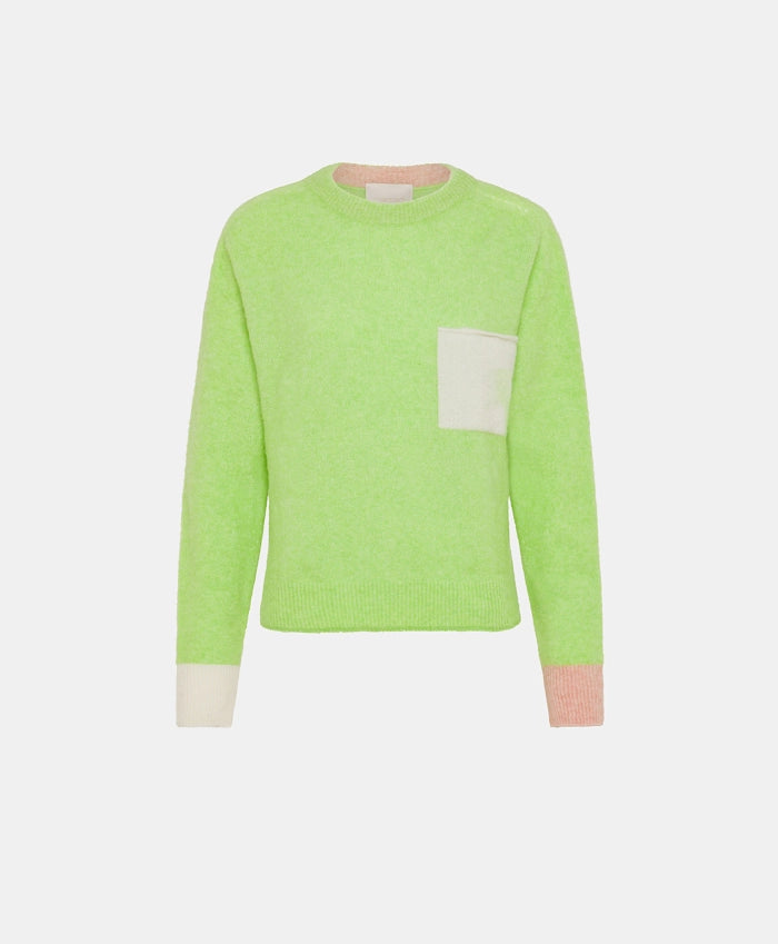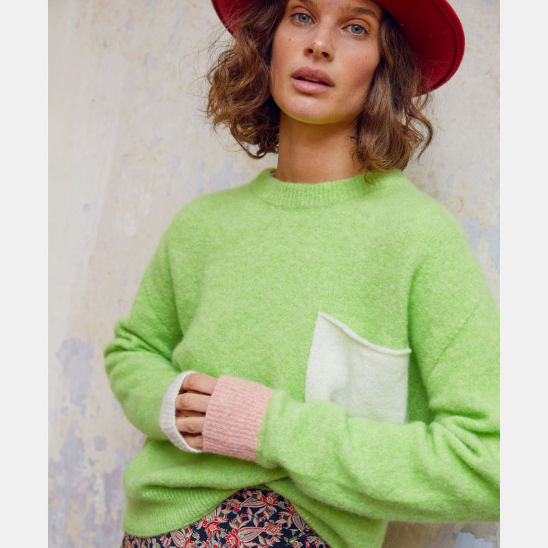 TRICOT ABETE EN BABY ALPAGA COLOR BLOCK - AI 23 - VERT ACIDE Momoni