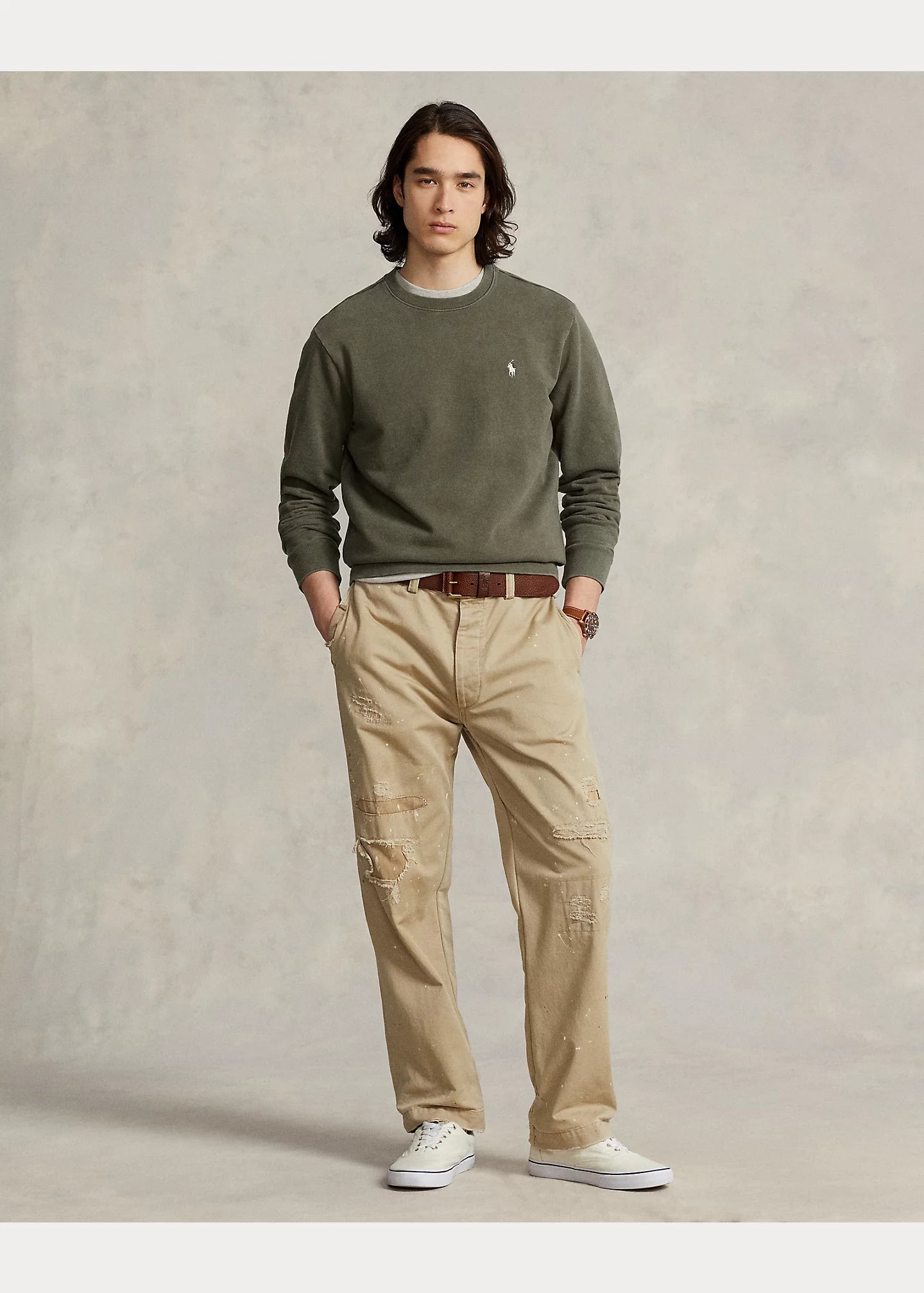 Confectionné dans un coton bouclé plus léger que notre molleton RL, ce sweat a été spécialement délavé pour un look d'inspiration vintage et arbore un intérieur doux façon coton éponge. Ce modèle est brodé de notre poney distinctif sur la poitrine.