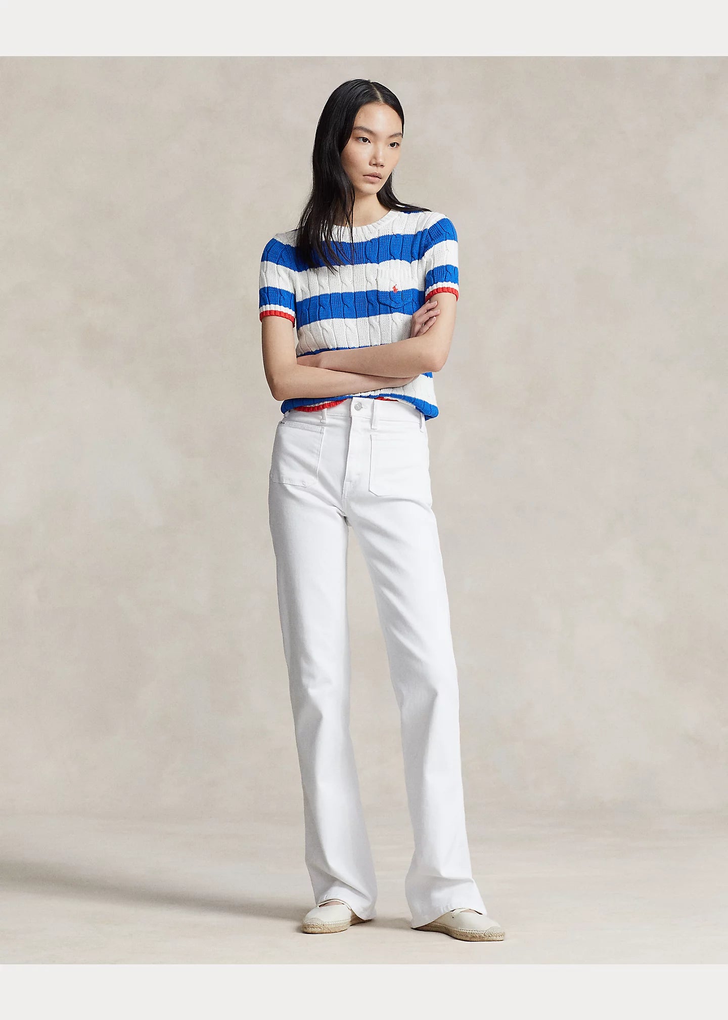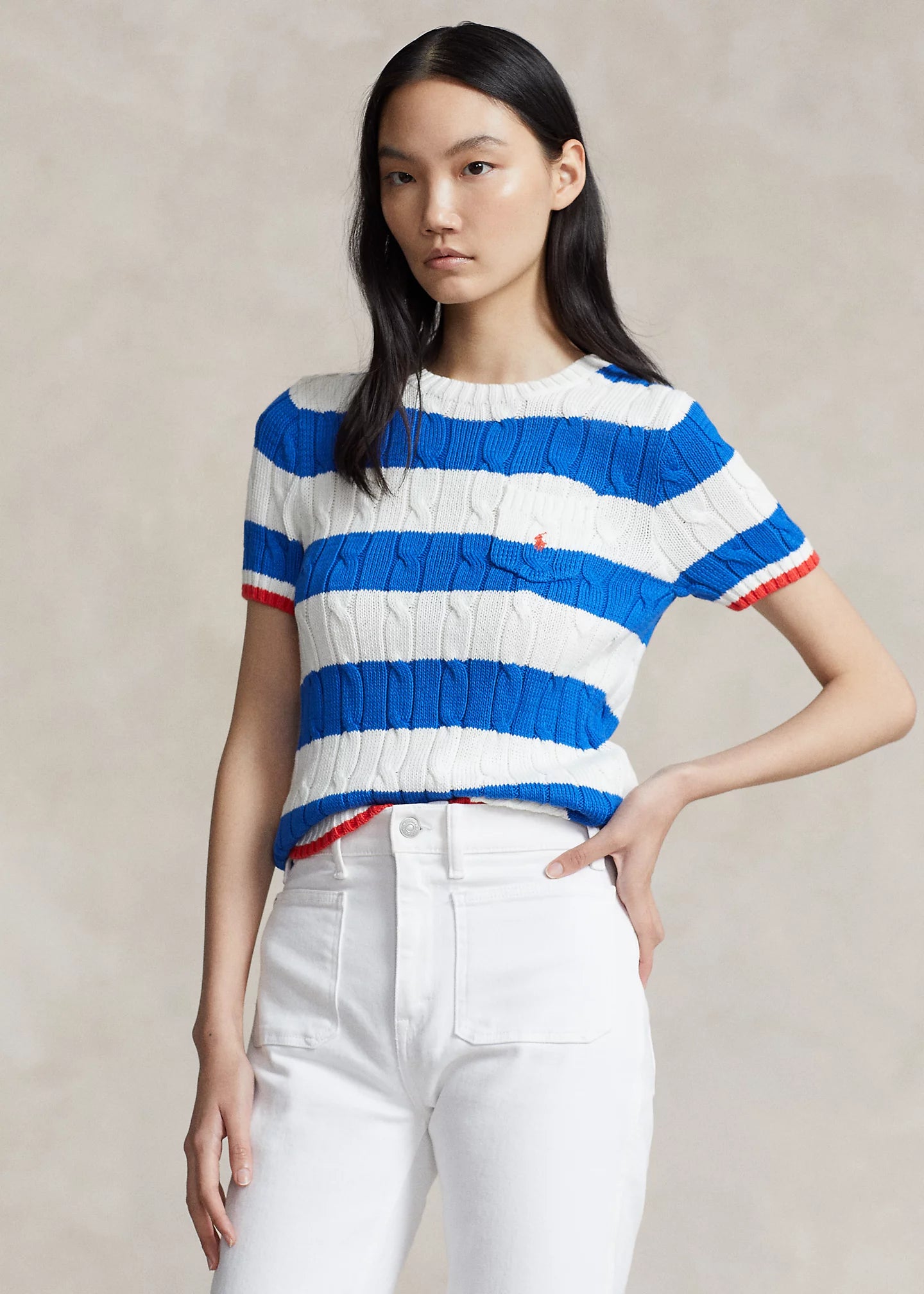 Pull torsadé à manches courtes en coton Ralph Lauren