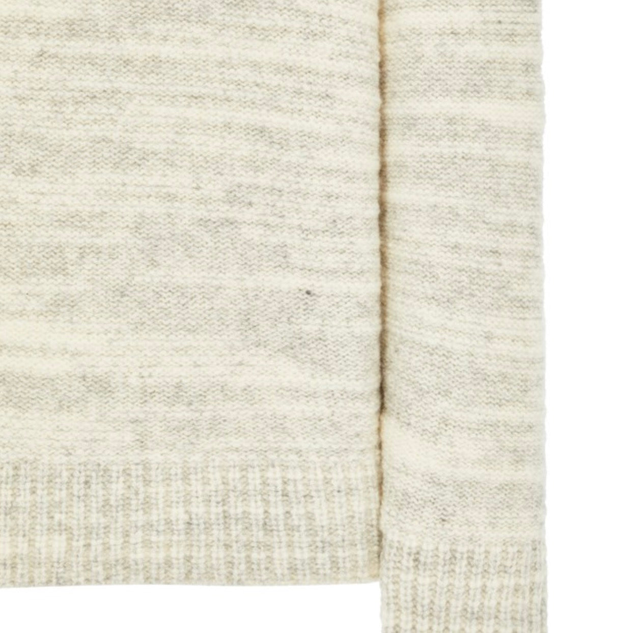 Pull ras-du-cou en fil bicolore de laine et nylon, venant créer un aspect flammé. Point mousse. Jauge 3.