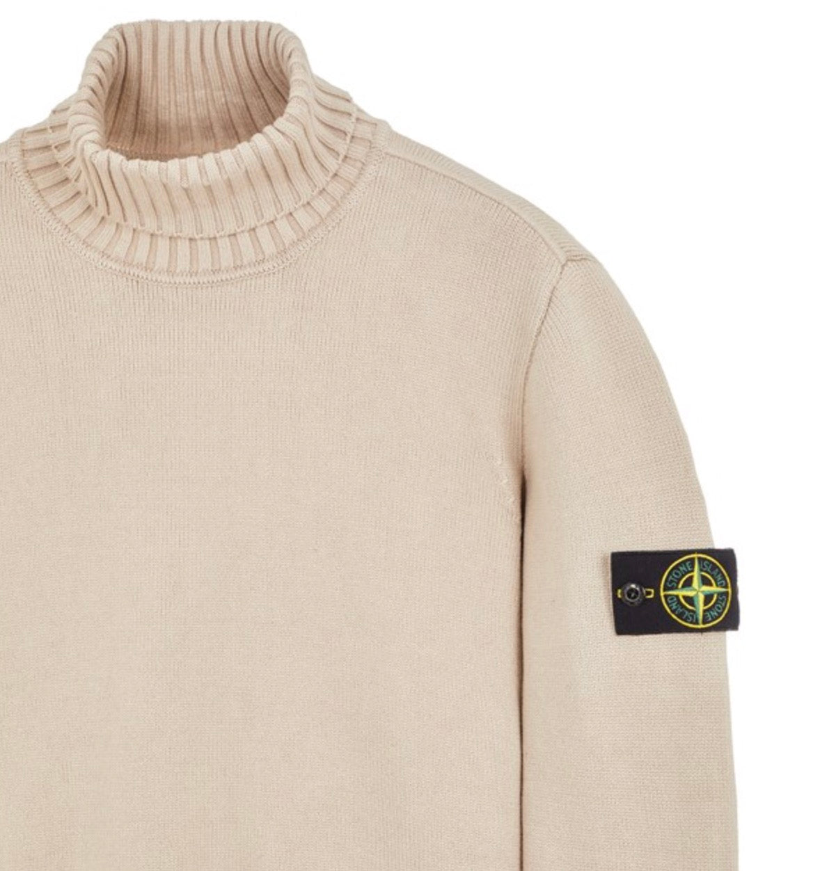 Coupe ample. Col à côtes anglaises. Points de recouvrement au niveau des épaules. Badge Stone Island sur la manche gauche. Poignets et bas finement côtelés.