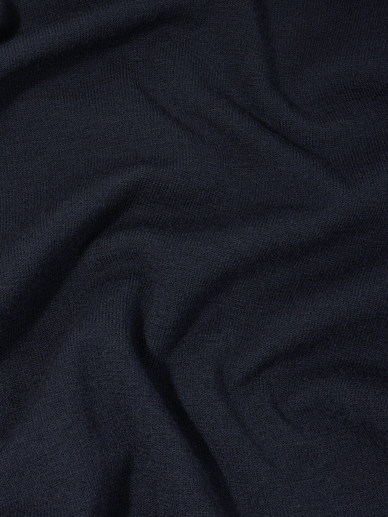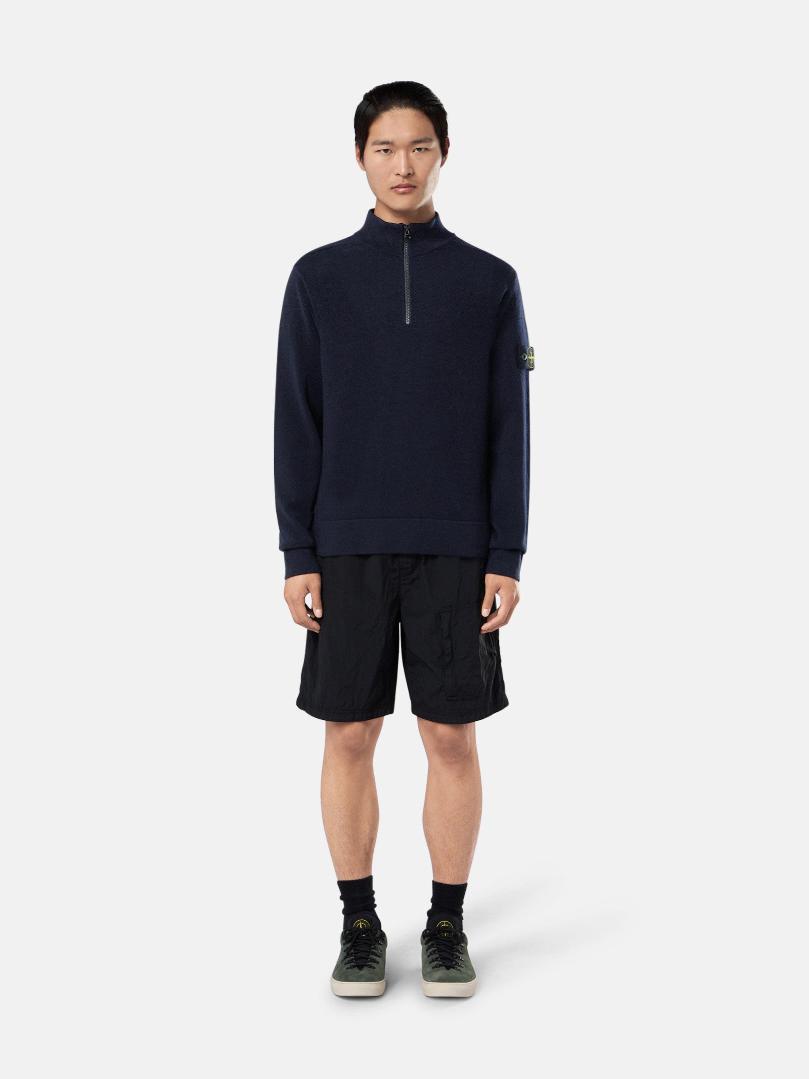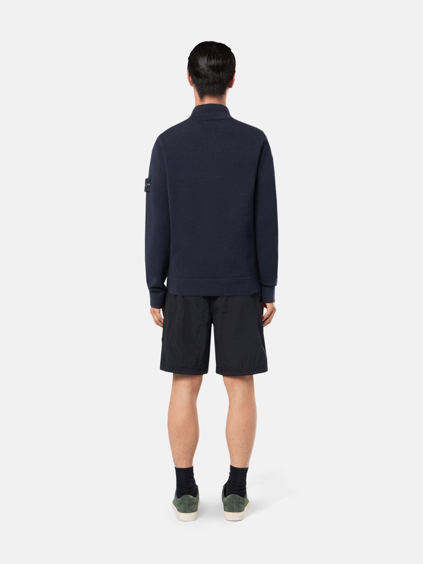 Pull au point jersey à col zippé en maille de laine stretch certifiée RWS doté d’un col montant zippé, de détails côtelés et d’une fermeture zippée à double curseur. Jauge 12.