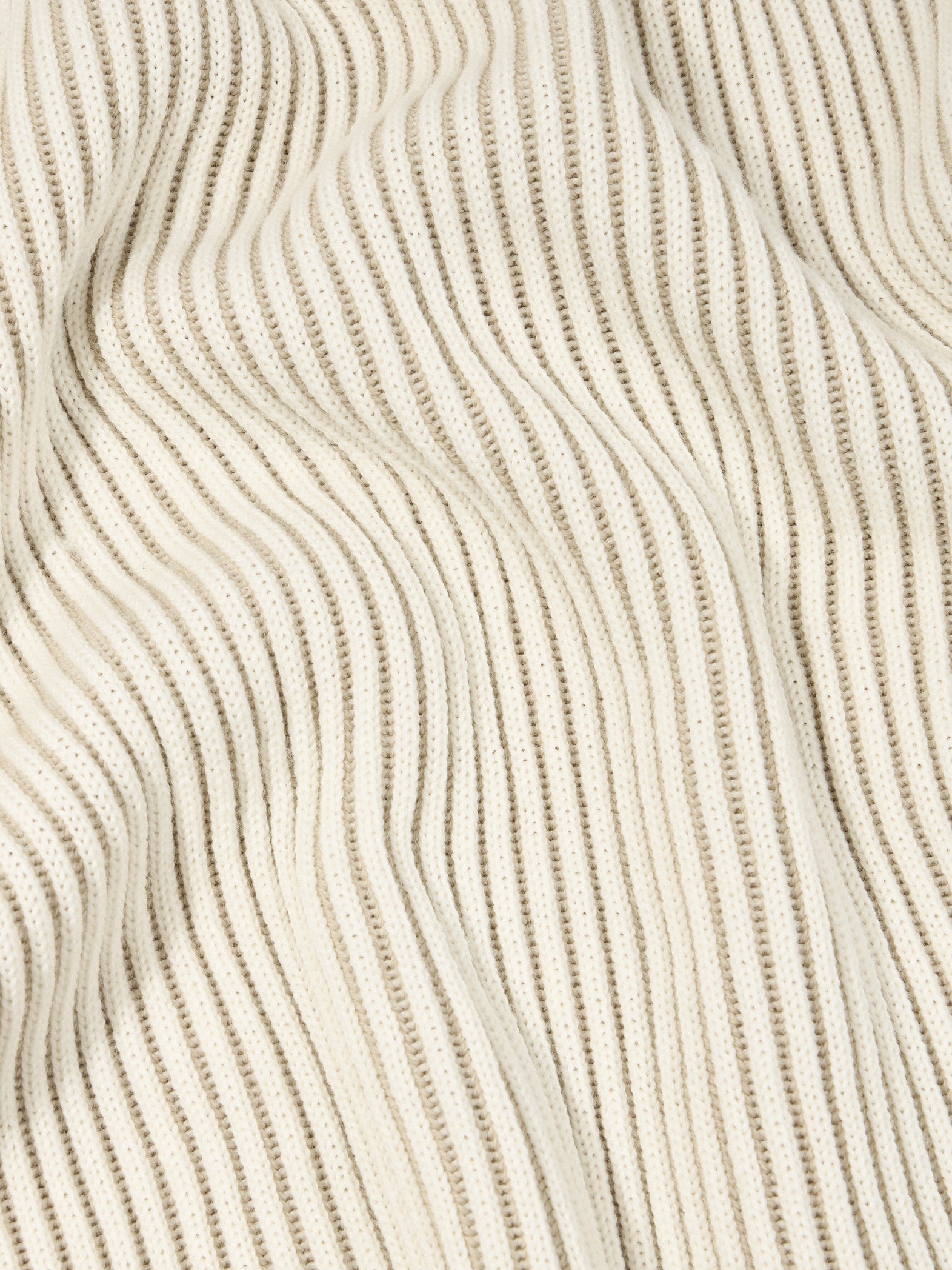 Pull à col zippé avec côtes anglaises en fils bicolores de laine certifiée RWS réalisé avec la technique du vanisage pour obtenir une perception plus intense des côtes et des contrastes de couleurs. Jauge 7. Le label Responsible Wool Standard (RWS) décrit et certifie les pratiques en matière de bien-être animal et de gestion des sols utilisés pour la production de la laine et assure le suivi des matières certifiées, de l'exploitation au produit final.