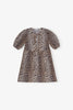 Cette robe courte en coton à imprimé léopard avec cordons à nouer est dotée une encolure ronde ouverte avec des fermetures à nouer et des manches bouffantes à bords élastiques.