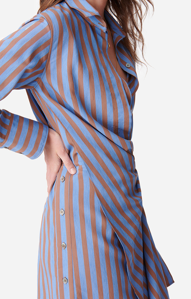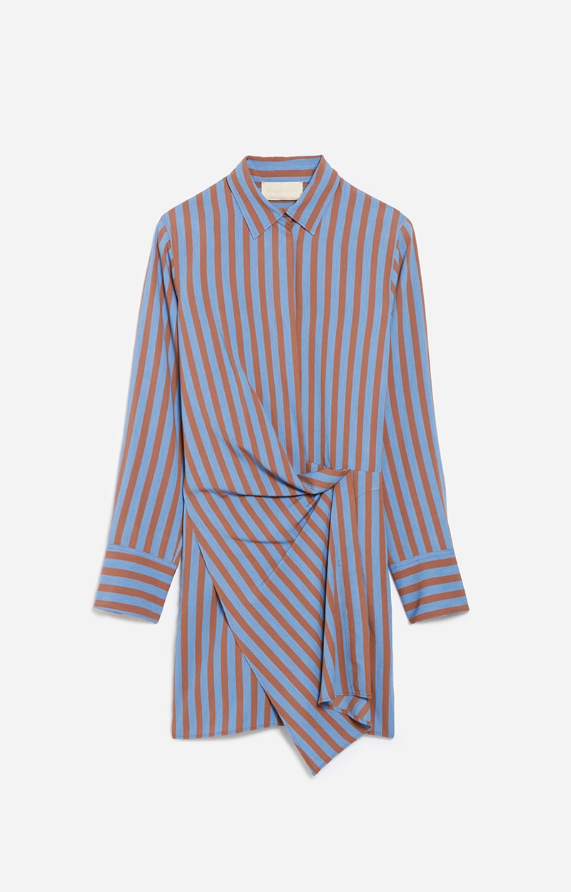 Robe chemise en popeline de coton mélangé Rayures