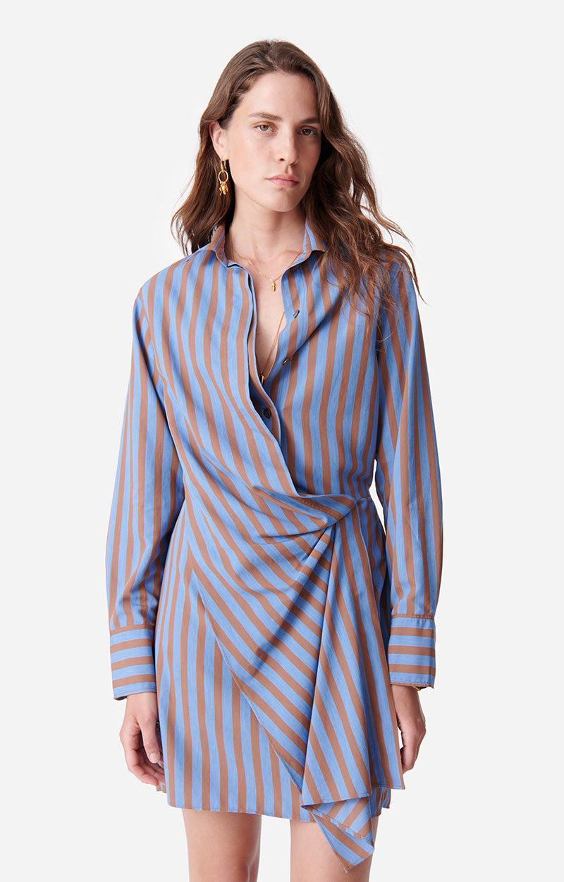 La mini-robe Demi est parfaite pour un look décontracté chic cet automne. Cette pièce sublime la robe chemise en y ajoutant des détails plus féminins, avec son effet portefeuille sur le devant qui crée un tombé fluide et sa taille marquée. Confectionnée dans un mélange de coton léger et souple, cette robe est la solution parfaite pour une tenue facile et chic, pour aller au bureau ou vos week-ends.