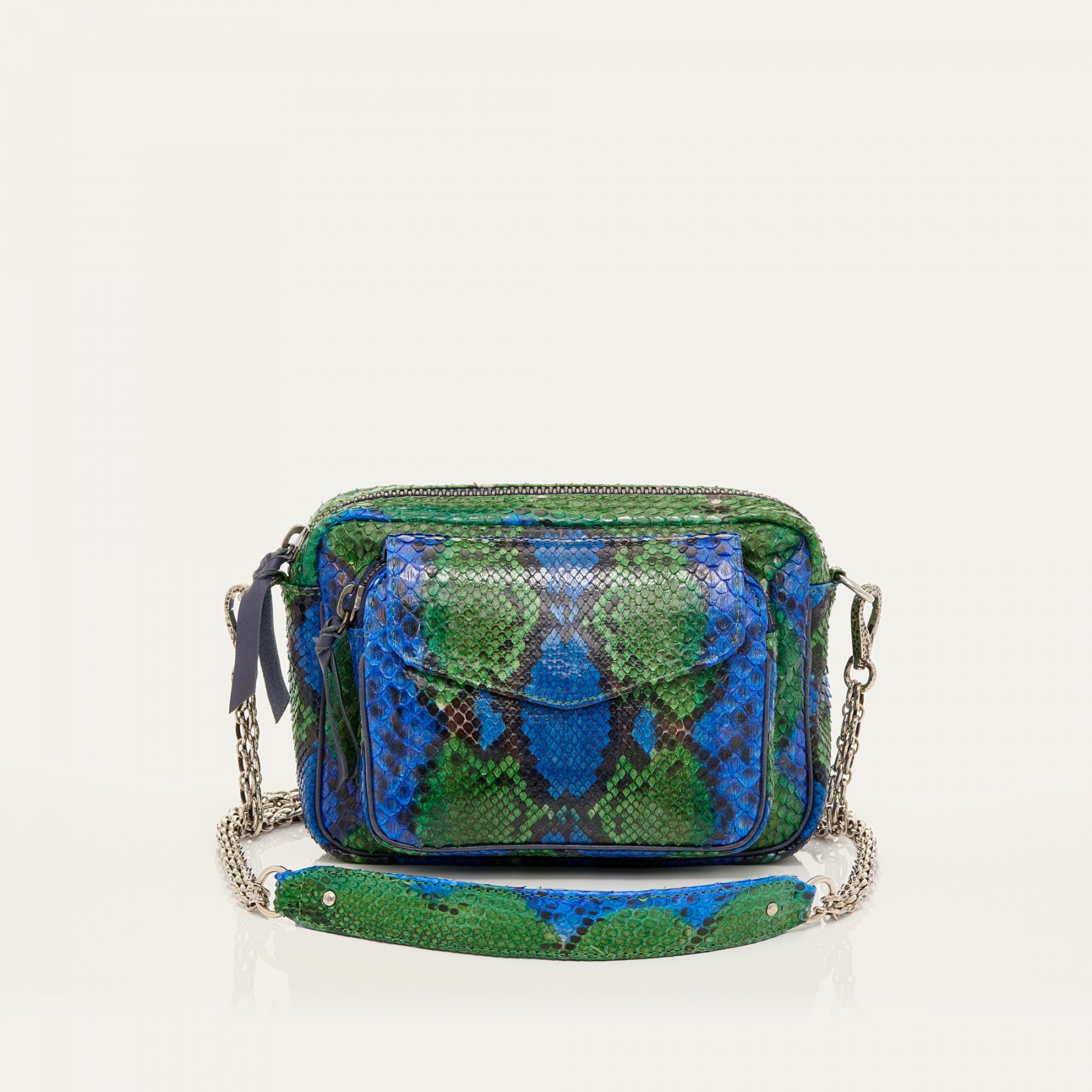 Ce sac porté croisé ou épaule est organisé en un compartiment avec une poche à l’avant. Notre Charly en python est muni d’une chaîne artisanale et de nombreux espaces de rangements qui facilitent la vie. Grâce à ses couleurs uniques, sa forme intemporelle, et son cuir souple notre Charly trouvera immédiatement sa place dans votre dressing !