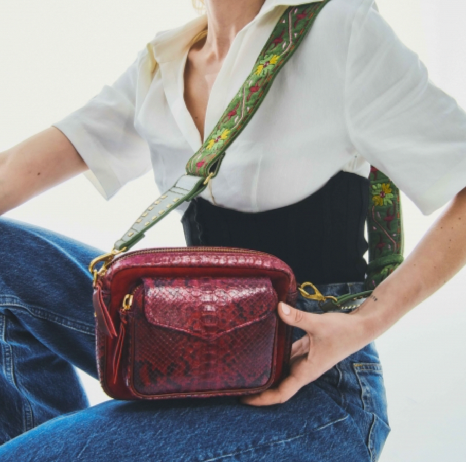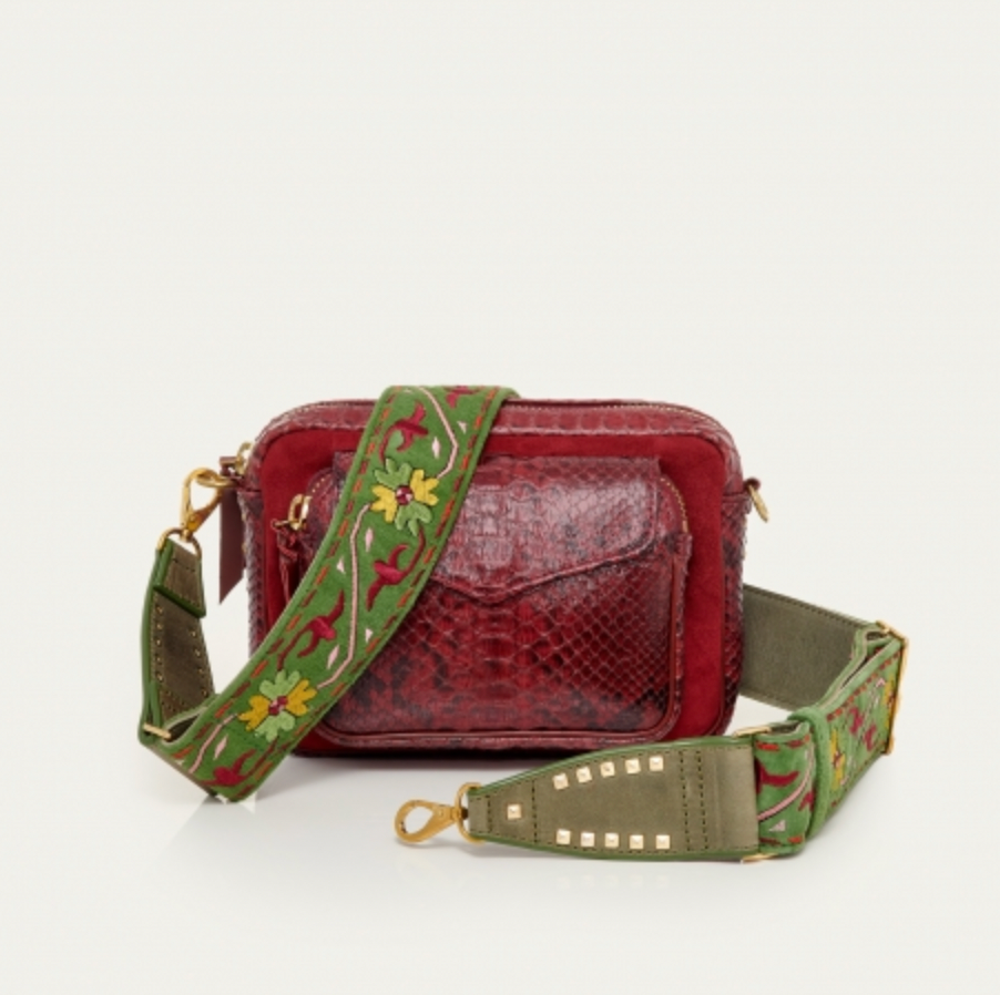 Ce sac porté croisé ou épaule est organisé en un compartiment avec une poche à l’avant. Notre charly en python et cuir suédé est muni d’une bandoulière brodée artisanale et de nombreux espaces de rangements qui facilitent la vie. Grâce à ses couleurs uniques, sa forme intemporelle, et son cuir souple notre Charly trouvera immédiatement sa place dans votre dressing !