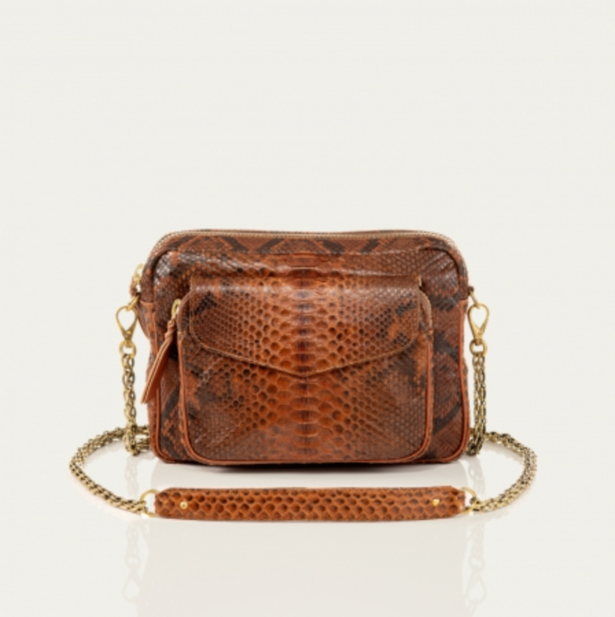 Ce sac porté croisé ou épaule est organisé en un compartiment avec une poche à l’avant. Notre Big Charly en python est muni d’une chaîne artisanale et de nombreux espaces de rangements. Plus grand que le Charly, le Big Charly vous permettra de transporter encore plus d’effets personnels ! Notre Big Charly trouvera immédiatement sa place dans votre dressing!