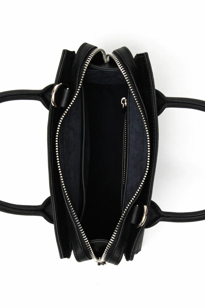 Longueur : 21,5 cm Hauteur : 18 cm Largeur : 9 cm Hauteur de la anse : 10,5 cm Longueur de la bandoulière réglable : 90 – 116 cm