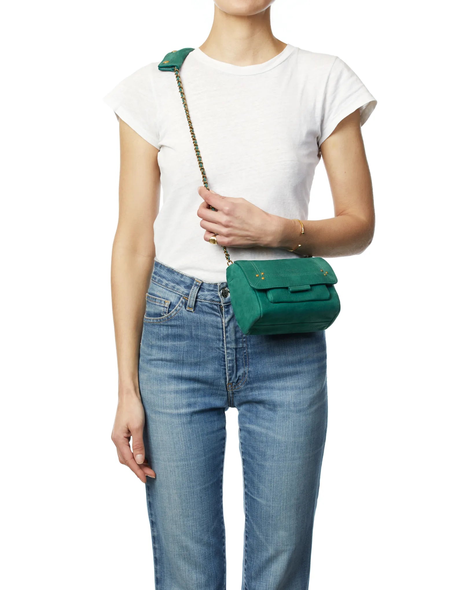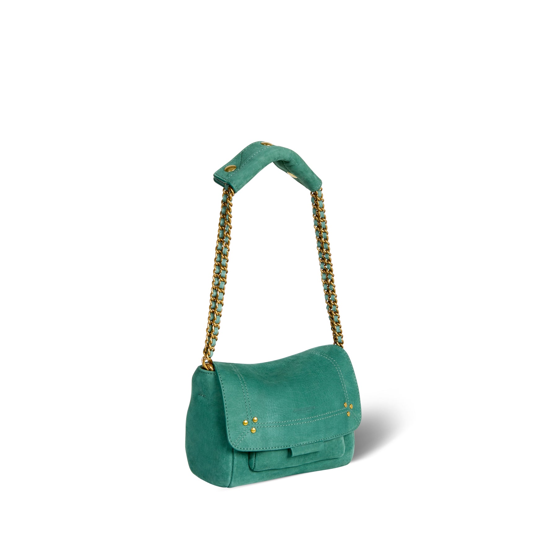Mini sac en cuir, porté épaule ou croisé. Bandoulière chaîne et cuir, amovible et ajustable. Rabat avec fermeture aimantée.