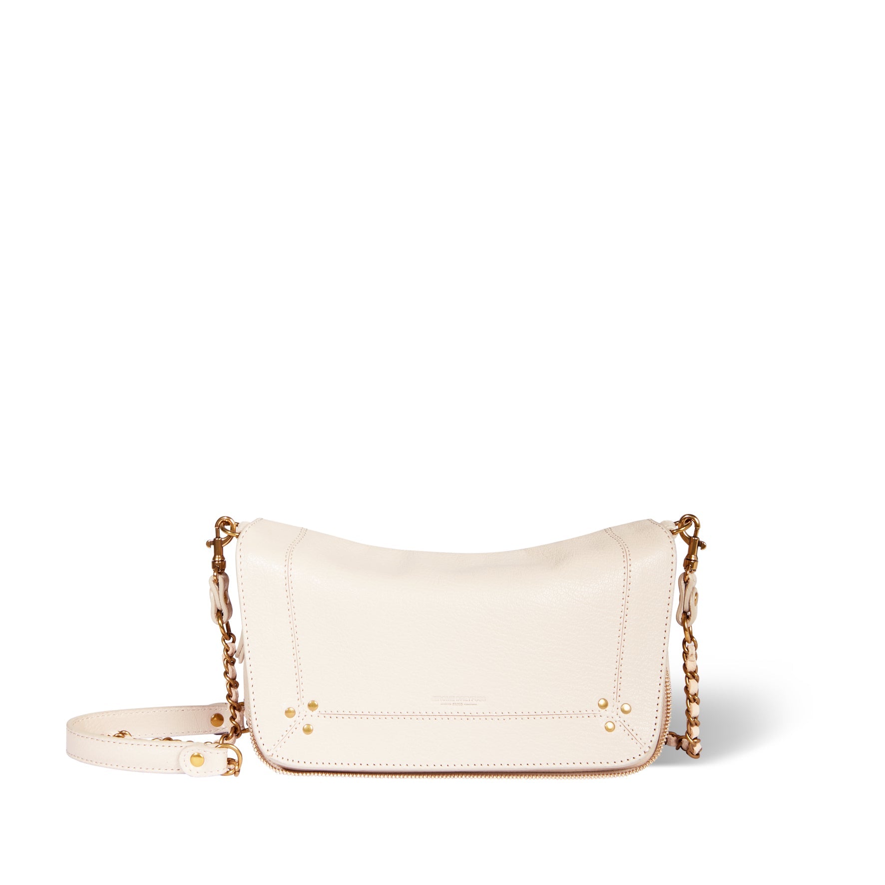 Une bandoulière amovible en chaîne tressée de cuir mesurant 105 cm. Fermeture par un rabat en cuir aimanté. Sac organisé en un grand compartiment. Un miroir et un lien porte-clés à l’intérieur du sac.