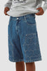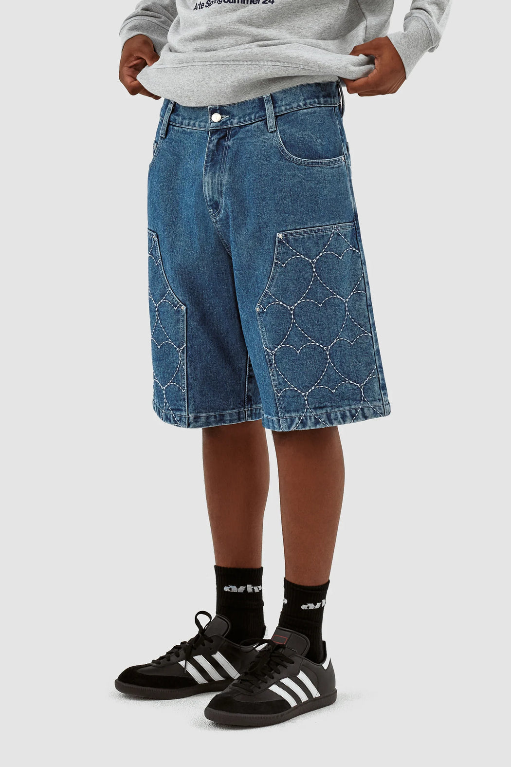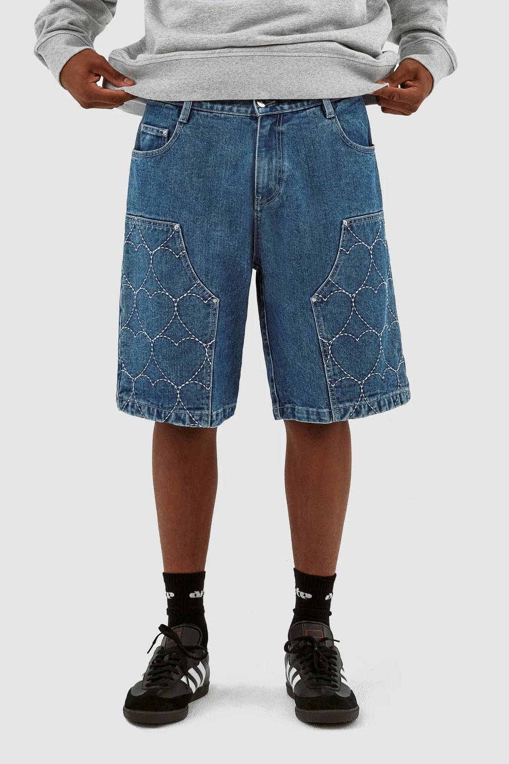 Le short Serena Hearts est un accessoire polyvalent pour l'été. Fabriqué en coton de qualité supérieure, ce short est conçu pour vous garder au frais et à l'aise pendant les chaudes journées d'été. Ce short est disponible en denim avec une broderie blanche sur les panneaux avant. Il est équipé de deux poches latérales et de deux poches arrière.