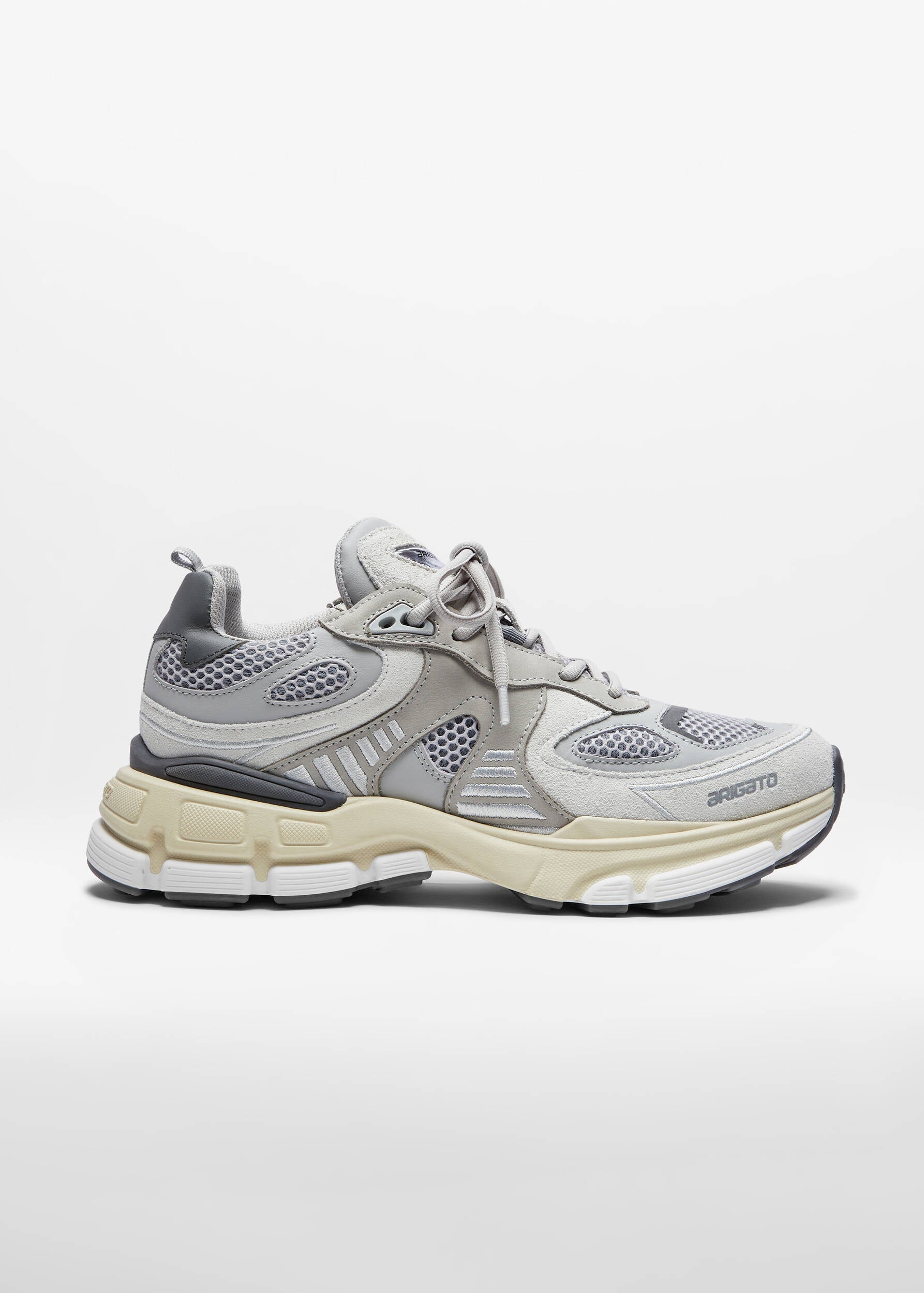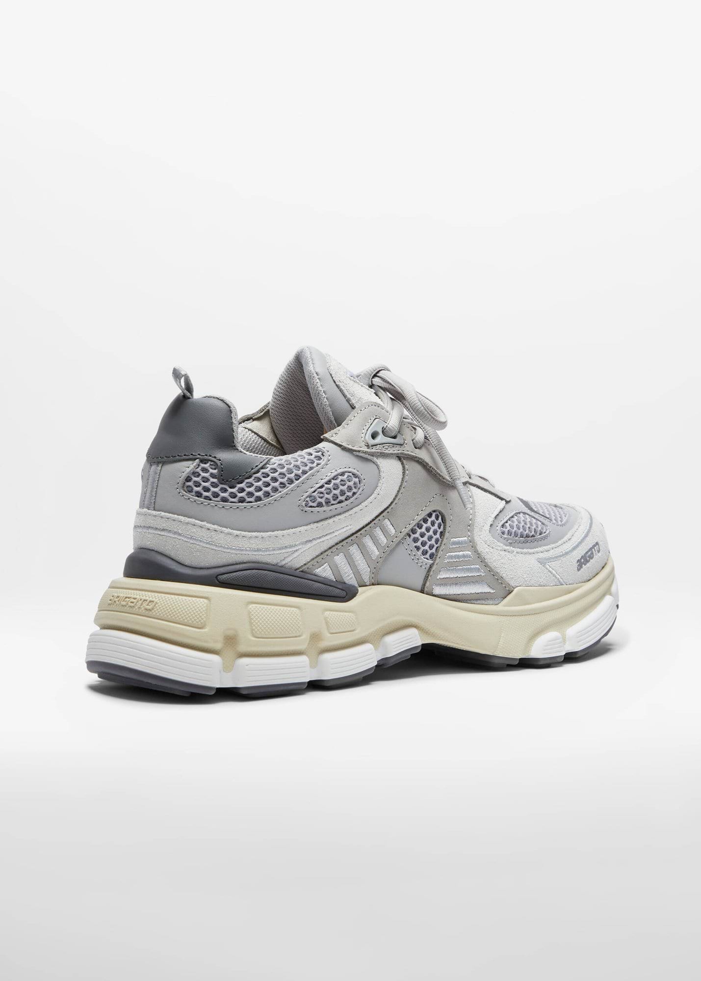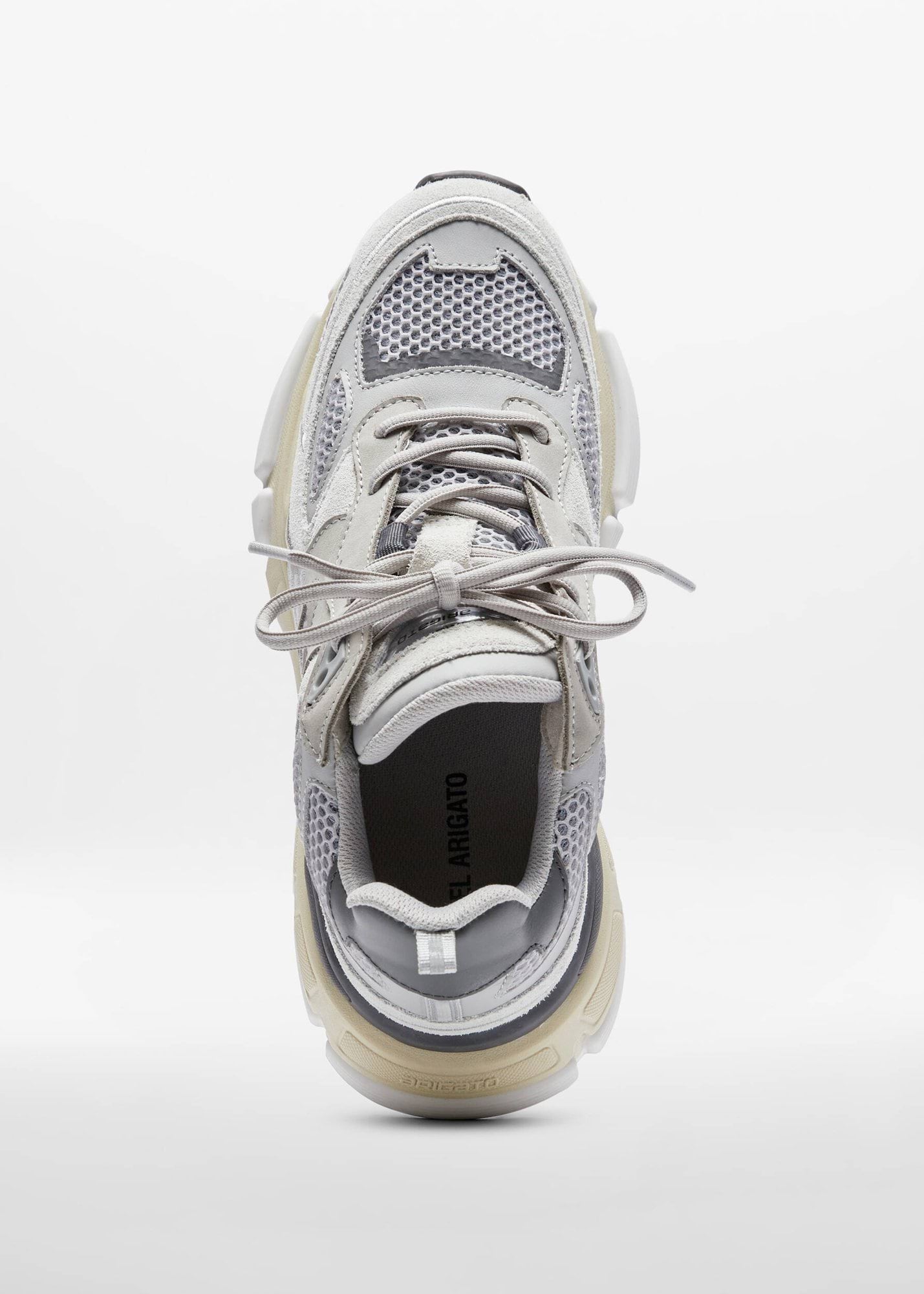 La Sphere Runner est fabriquée à la main à partir de panneaux incurvés en cuir certifié LWG, en daim et en maille alvéolée. S'inspirant des chaussures de sport des années 90, ce modèle présente des proportions plus importantes, légèrement plus hautes sur la cheville et montées sur des semelles Marathon Runner nouvellement personnalisées. Des bandes réfléchissantes s'étendent du talon aux orteils.