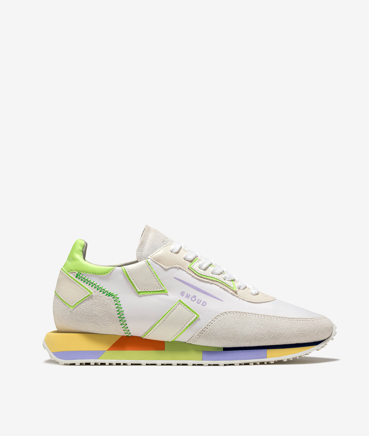 Sneaker fashion running contemporaine,le modèle Rush Ghoud présente un design essentiel distingué par lignes géométriques décidées. Tige en nylon et suède avec détails en tissu technique pour un contraste distinctif. Logo iconique imprimé sur le coté. Cette chaussure a une chaussade plus large. On sugère d'acheter une demi-taille en moins si disponible.
