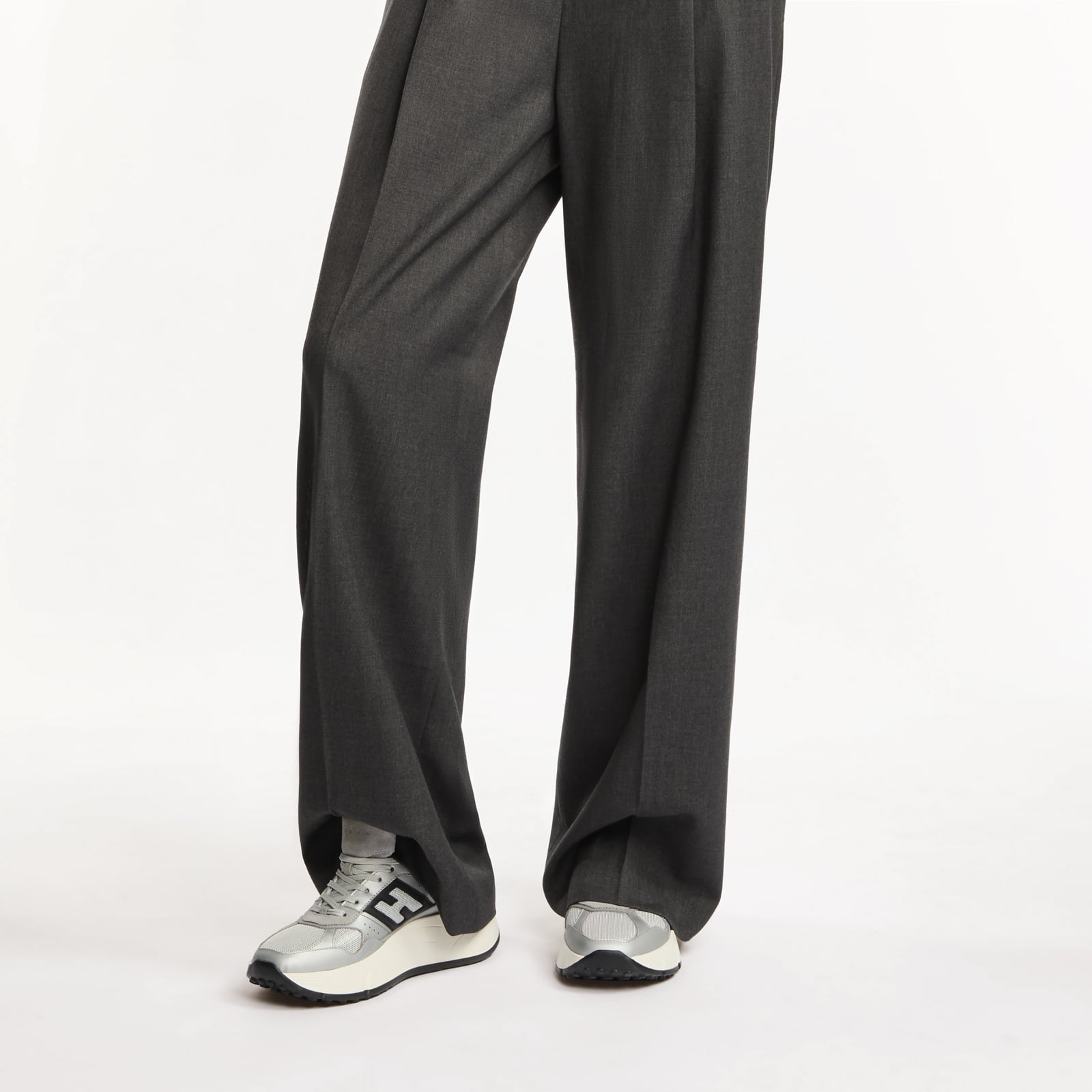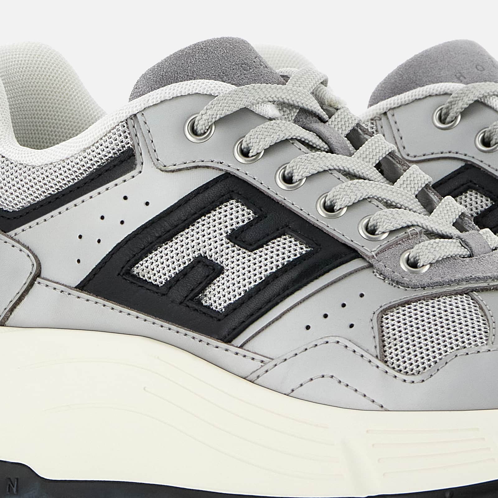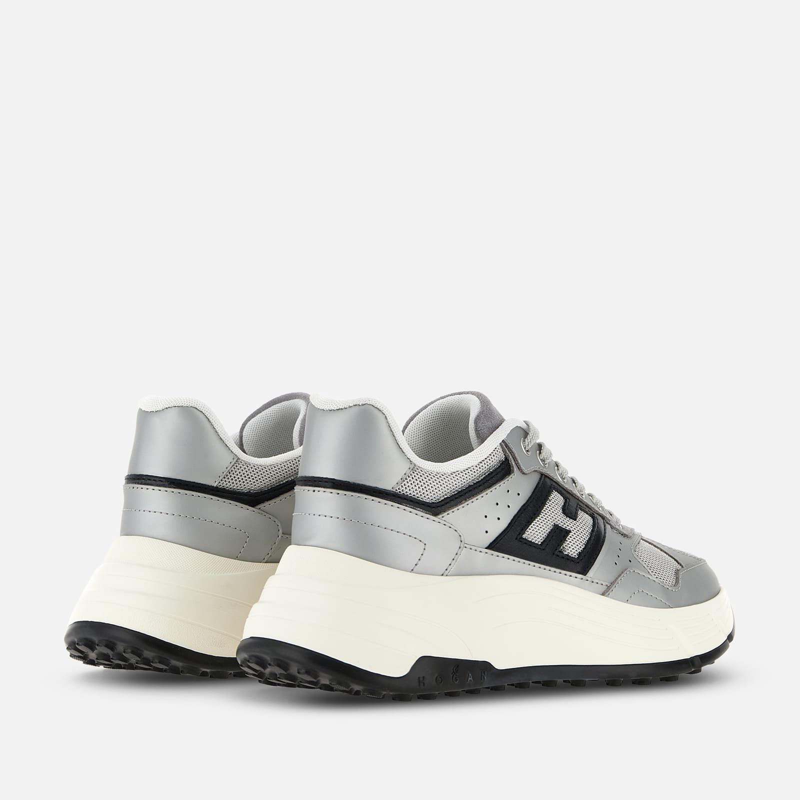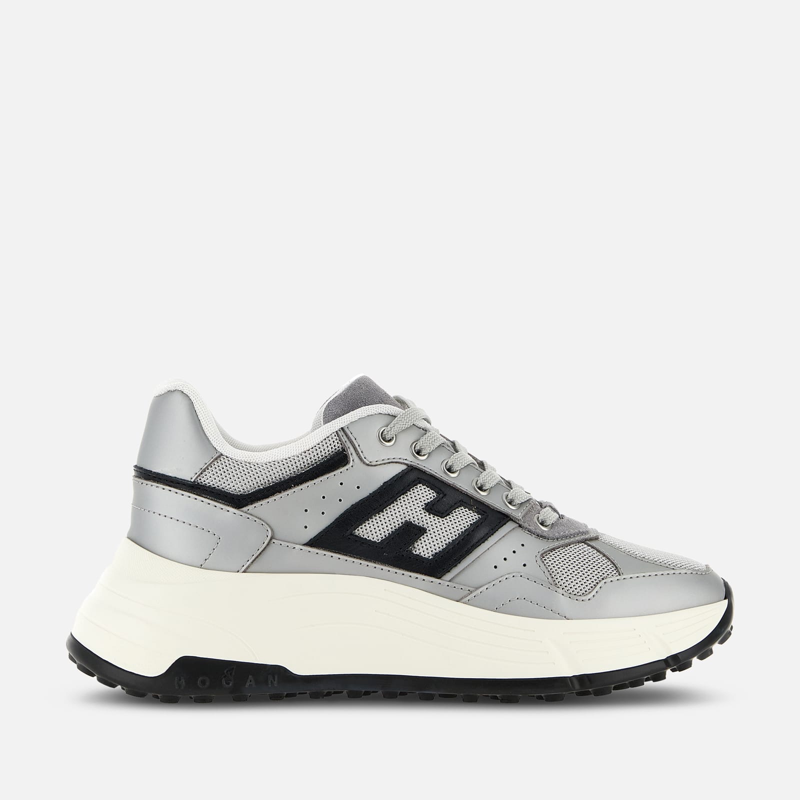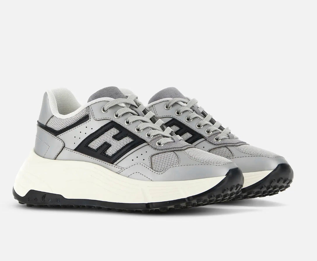 Les sneakers Hogan Hi-Fi déclinent au féminin la semelle Hyperlight avec crampons, avec une plateforme donnant élévation et élégance. En évoquant l'iconographie sportive des années 80 avec des finitions techniques et une vocation urbaine, elles sont caractérisées par une combinaison de lignes souples et vives. Le dessus est réalisé ici en cuir lamé et tissu technique, avec un maxi H sur la bande latérale. Un modèle athleisure énergique, avec une semelle interne en mousse à mémoire de forme qui assure un confort extra et l'amorti du chaussant.