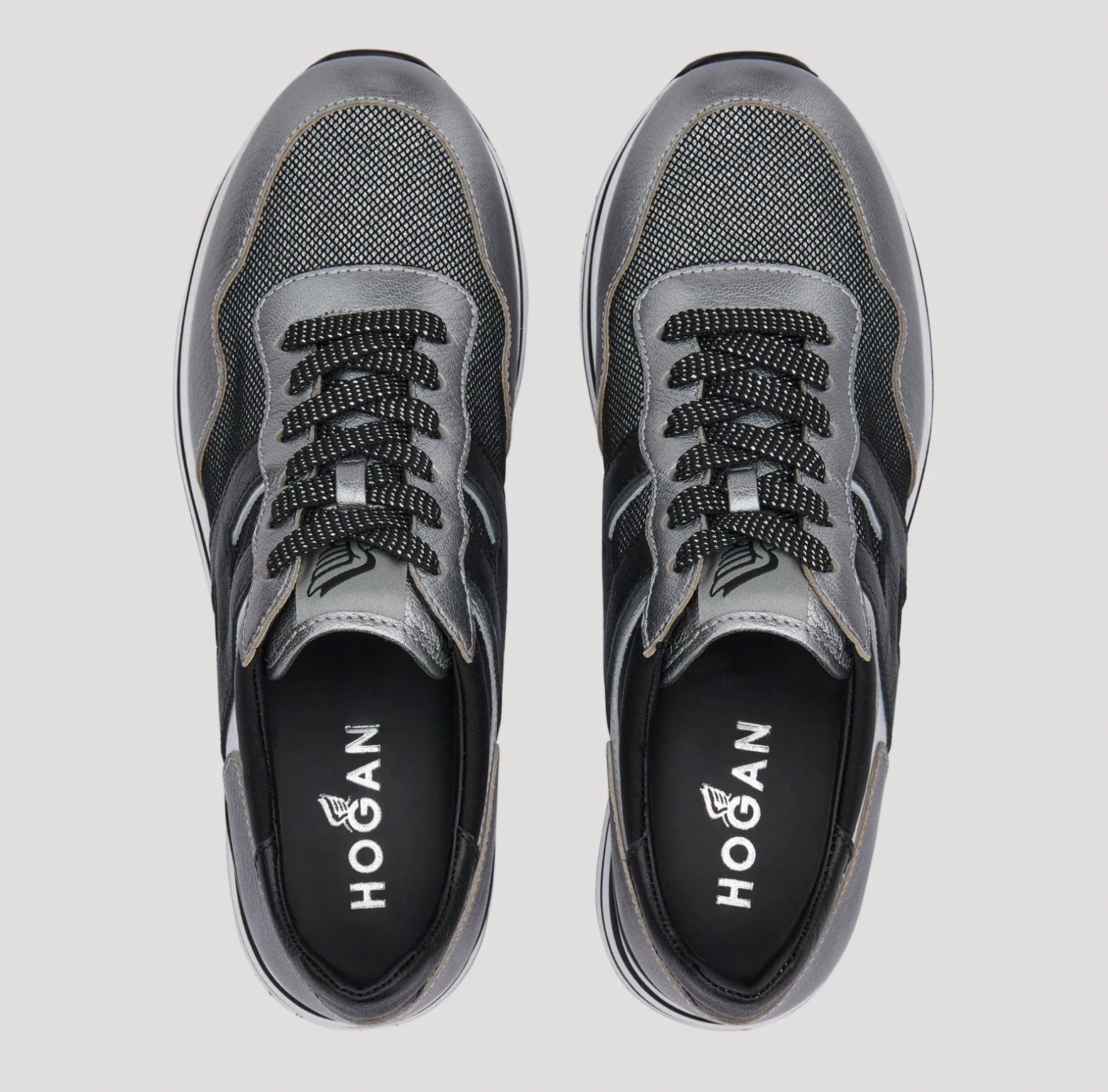 Les nouvelles sneakers Midi H222 en cuir métallisé avec inserts en tissu technique se distinguent par le H latéral souligné d'un ombrage. Inspirée de l'esprit casual glam, elles sont dotées d'une semelle iconique qui les rend parfaites pour les tenues de tous les jours, même les plus simples.