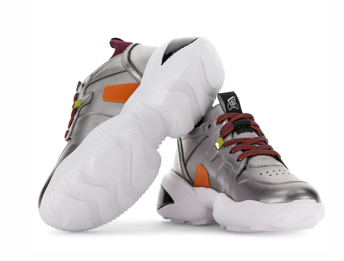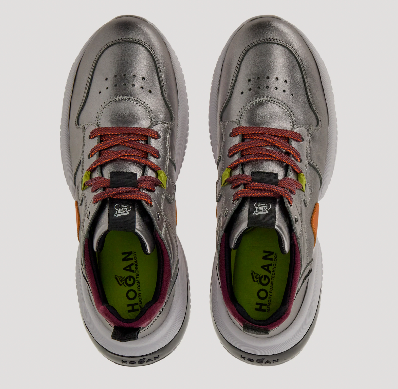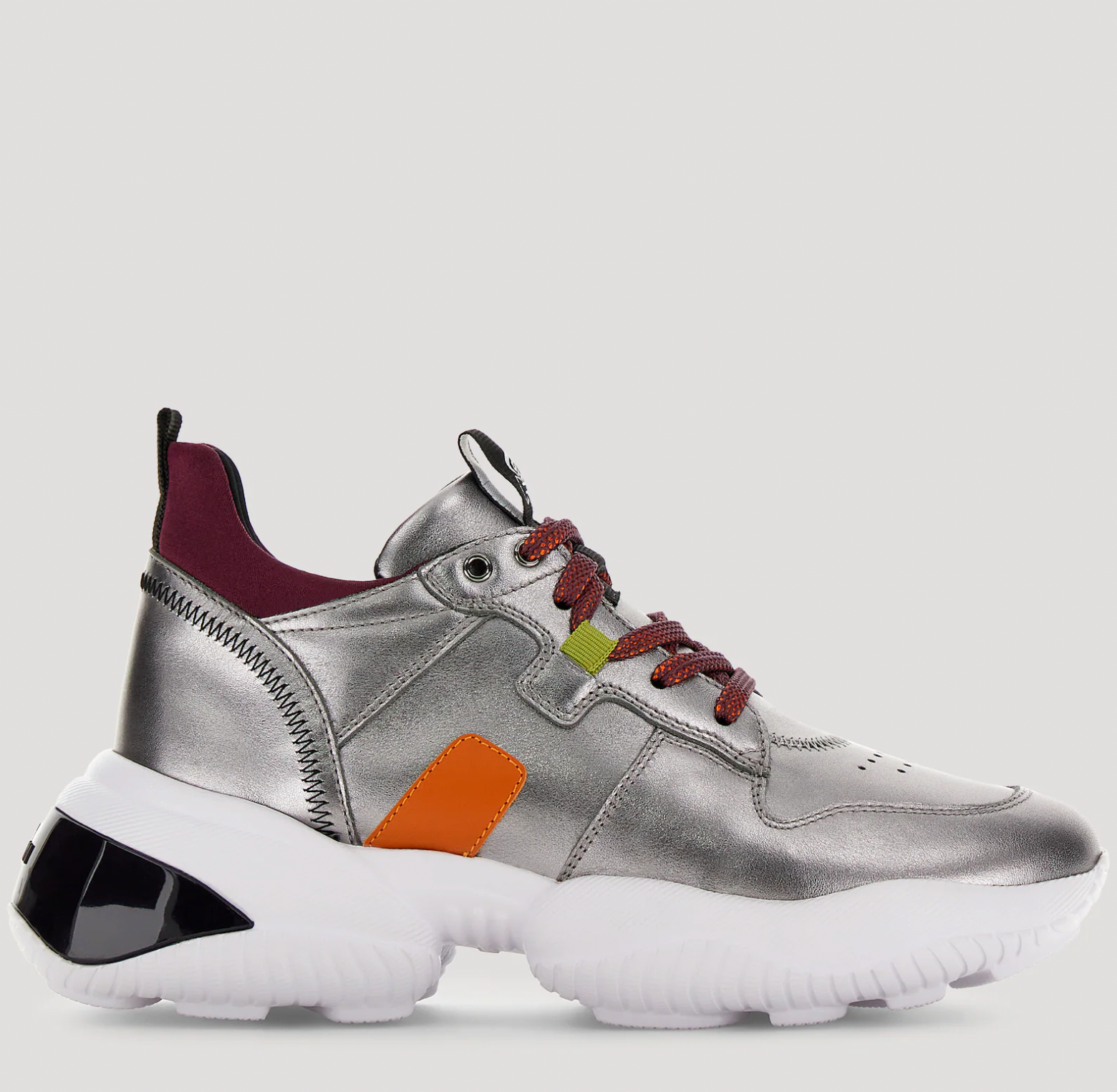 Audacieuses et futuristes, les sneakers Interaction se distinguent par leur semelle ultra-légère aux volumes oversize qui soutient et amortit la marche. Cette version en cuir métallisé avec spoiler brillant présente un monogramme H latéral aux contours arrondis. Mettez une touche ultra glam à votre tenue casual.