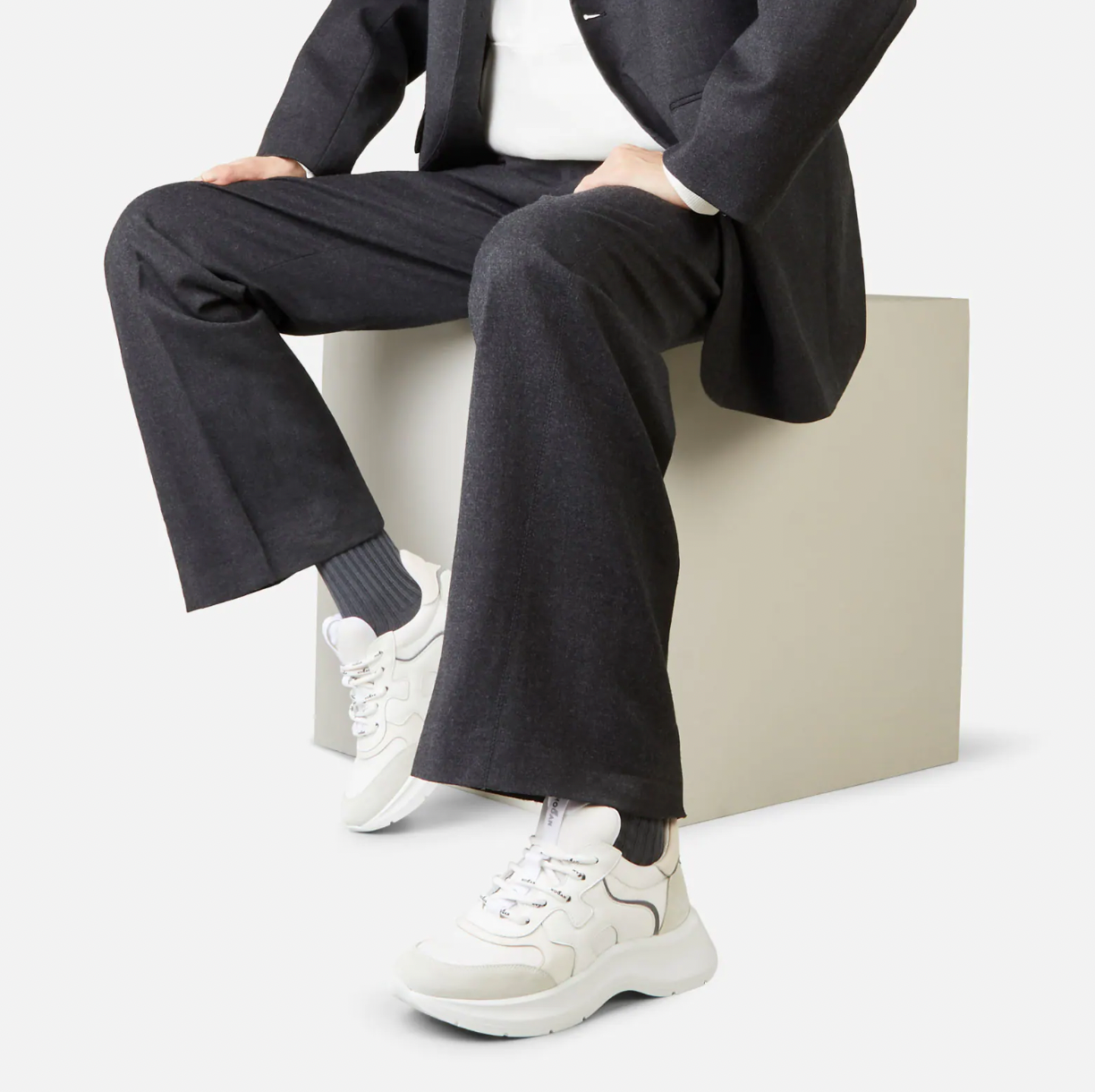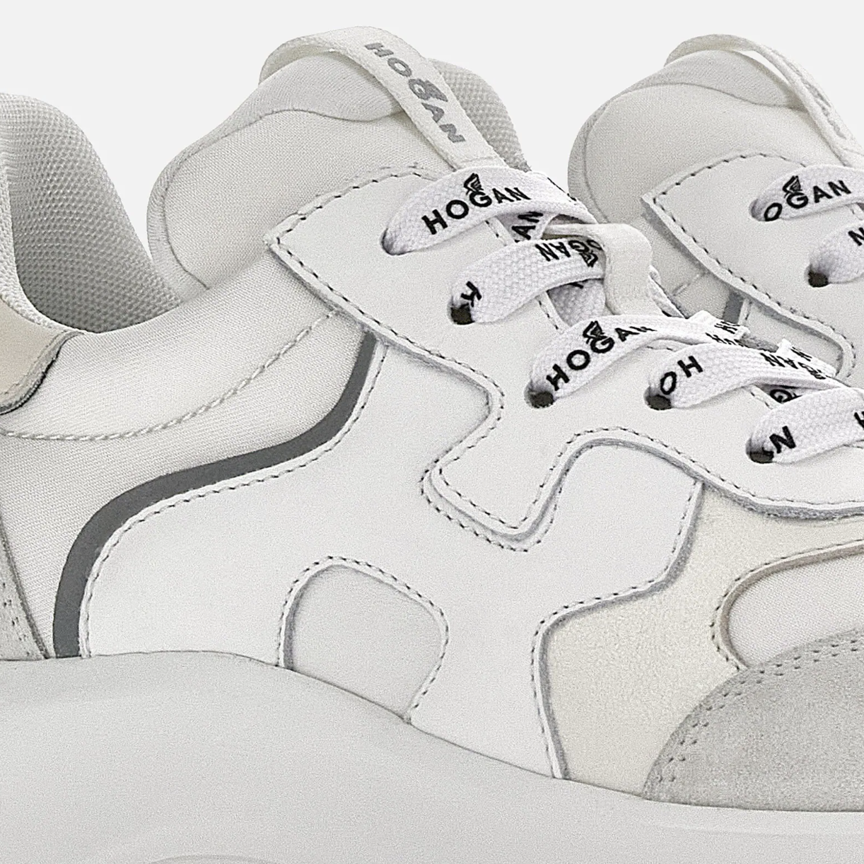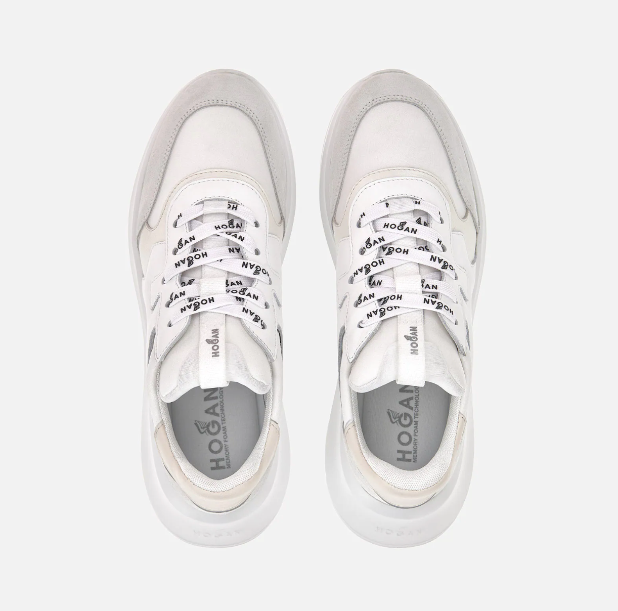 Nouveau modèle aux lignes sinueuses, la sneaker pour femme H585 se distingue par une semelle extra-light. L'empeigne en cuir lisse avec inserts en tissu technique présente des coutures ondulées qui soulignent le H latéral. Le laçage est orné de boucles en gros-grain, tandis que la semelle interne en mousse à mémoire de forme assure un chaussant amorti. Un modèle au caractère dynamique, dans une version résolument cool.