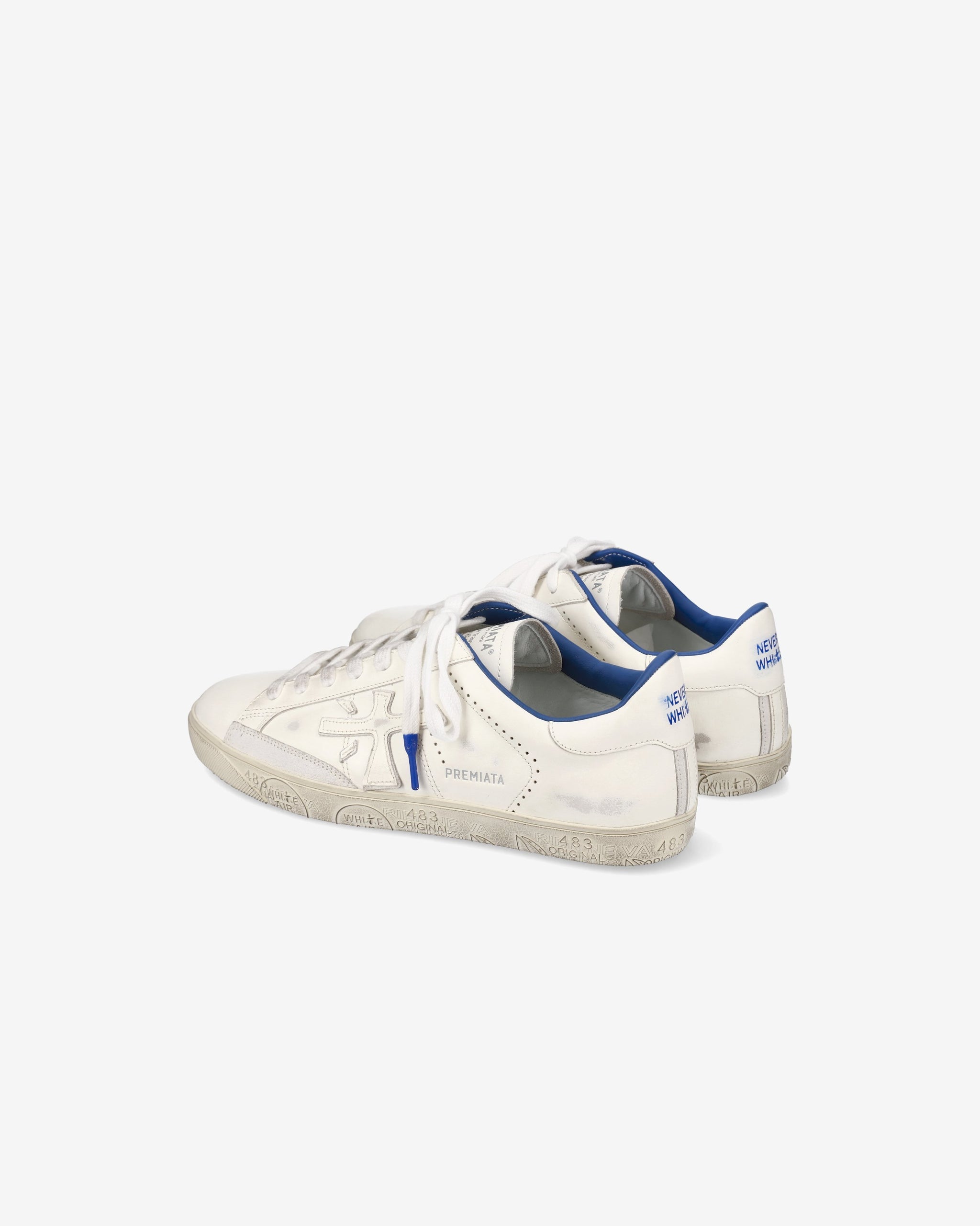 À l'occasion du 15e anniversaire de la ligne de baskets White, la capsule Never White voit le jour. Iconique et avant-gardiste, elle s'adapte à un look urbain et jeune. Ces baskets Steven à tige en cuir se distinguent par leur logo ton sur ton et leur talon en cuir.