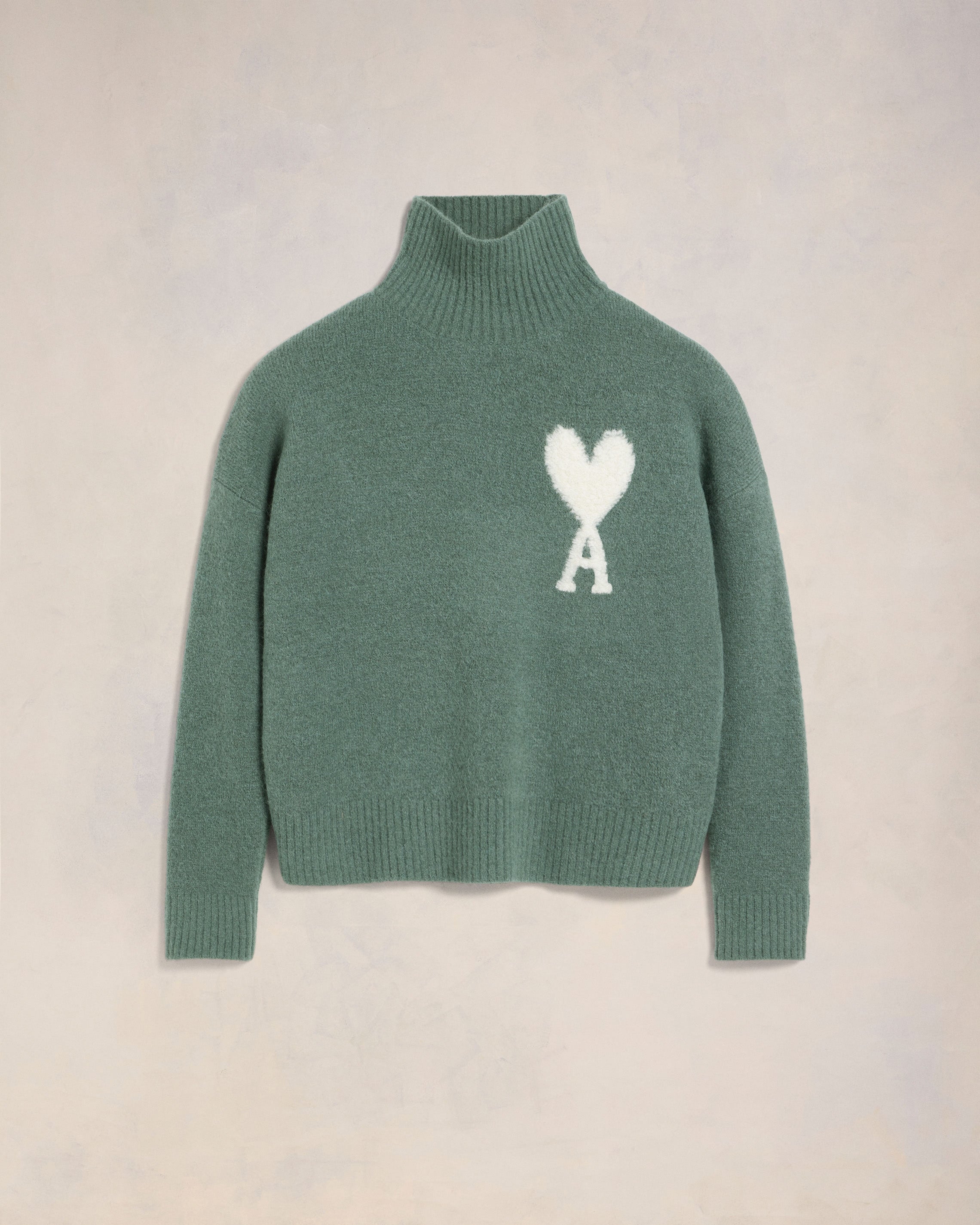 Pull en maille texturée en alpaga.Produit unisexePoint interlockLogo Ami de Coeur écru point fourrure tricoté en intarsiaLongueur milieu dos 62 cm (taille M)Longueur milieu dos 56 cm (taille XS)Fabriqué au Portugal (avec amour)