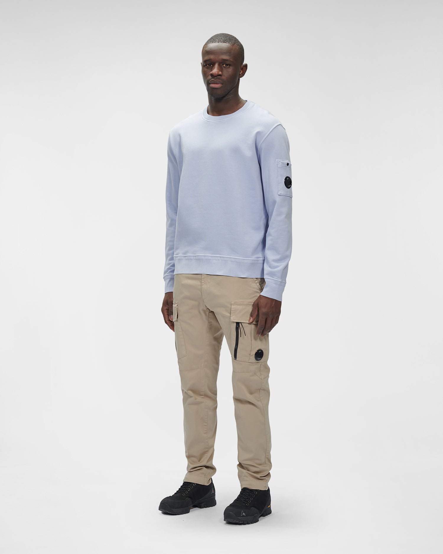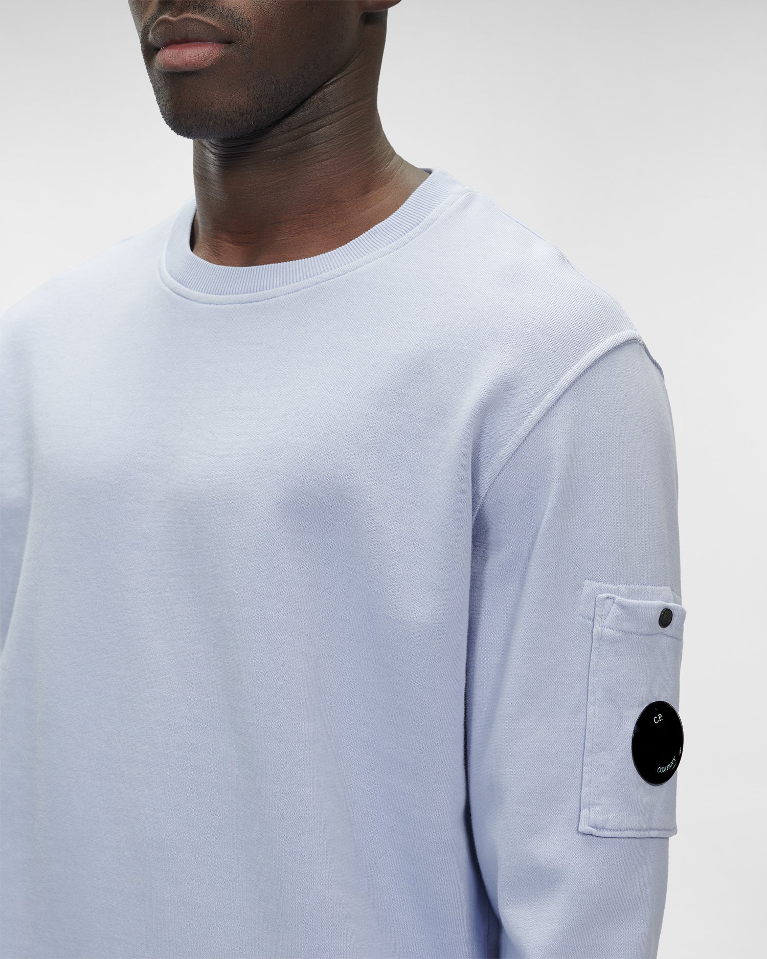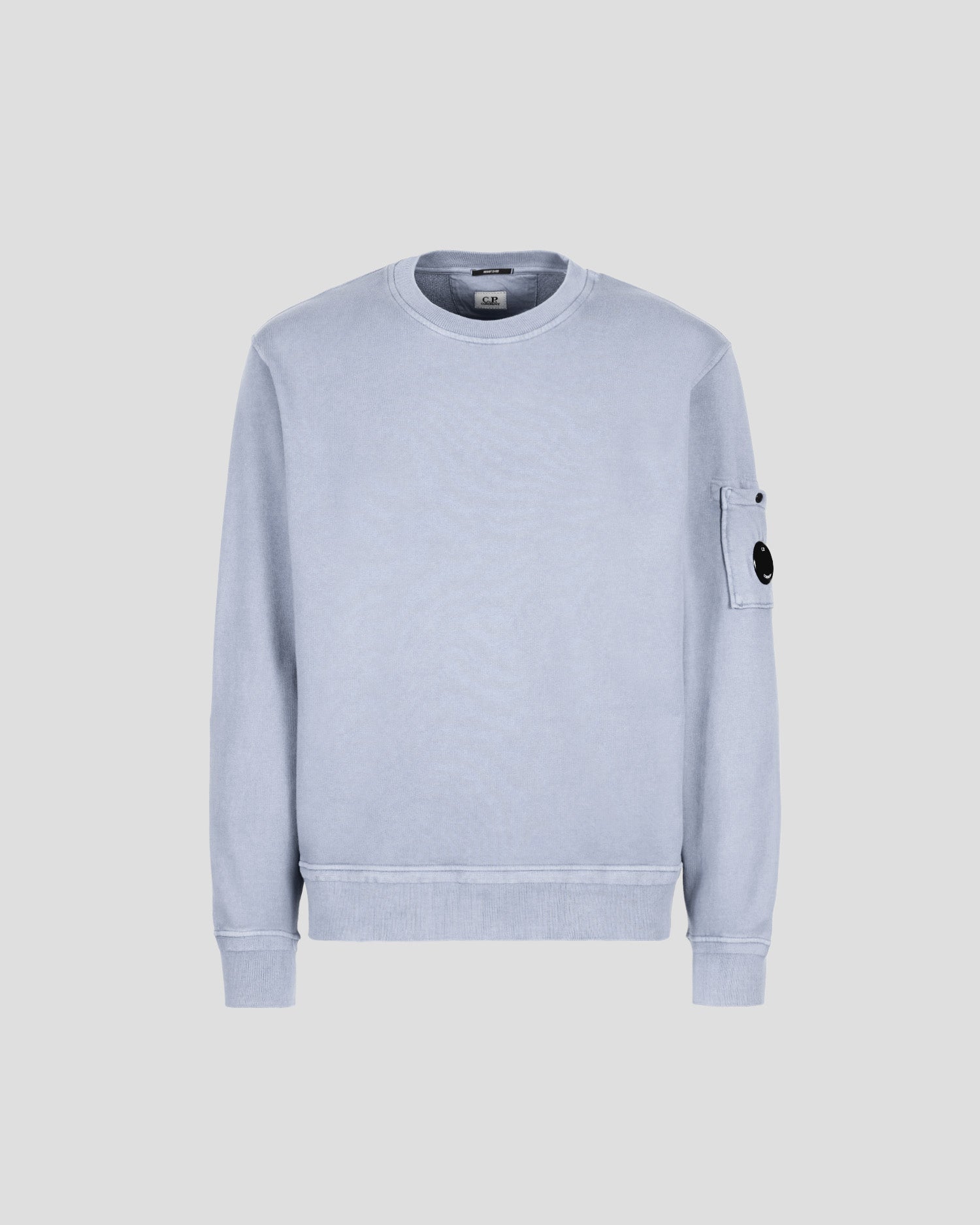 Sweat-shirt à col ras du cou, rehaussé du détail en forme de verre de lunette C.P. Company sur la poche de la manche et de bords côtelés. Modèle confectionné dans un molleton de coton mi-épais, puis teint par réserve pour un fini ton sur ton contrasté.