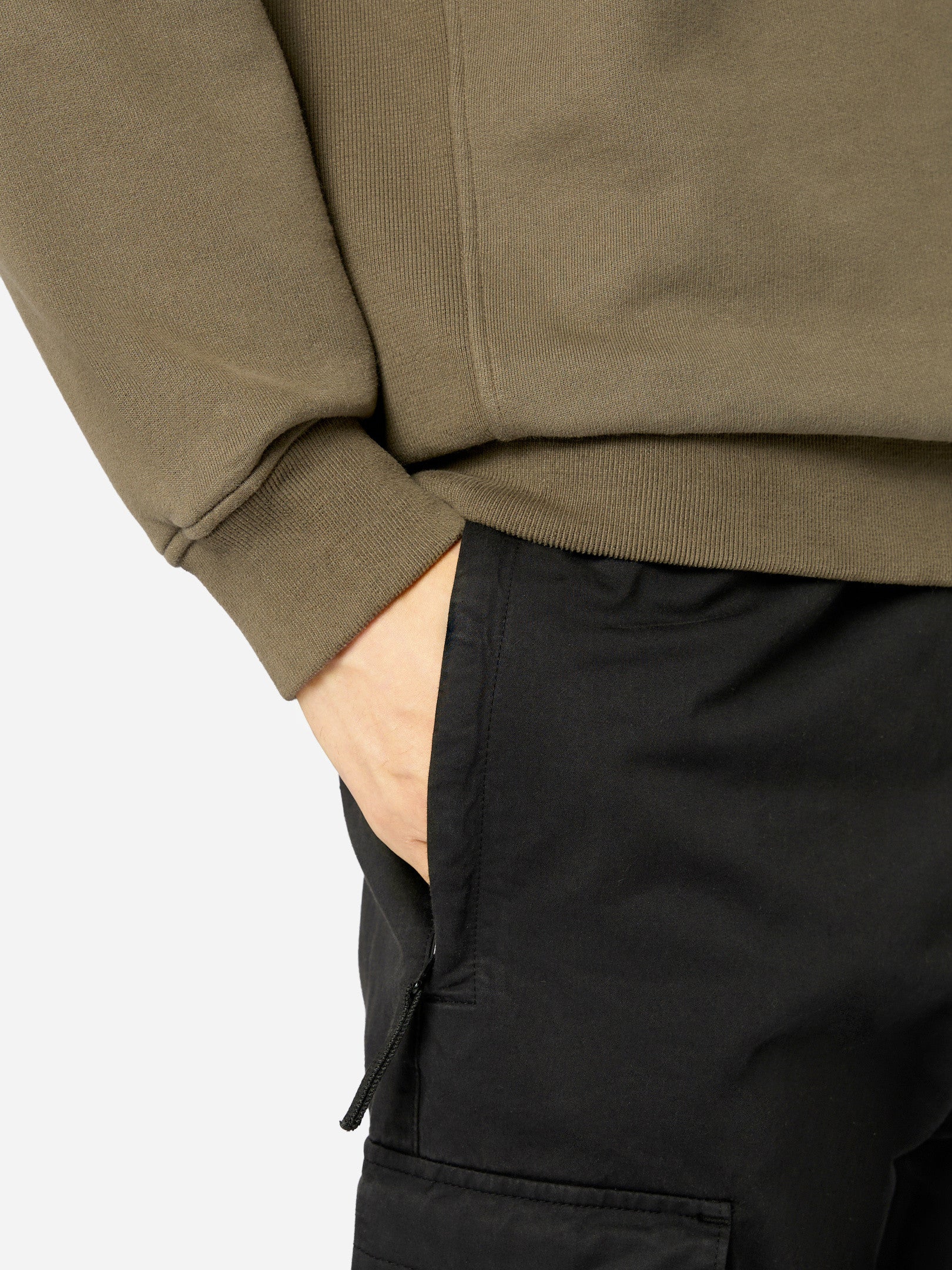 Sweat-shirt ras-du-cou en coton biologique molletonné gratté doté de bandes latérales côtelées en coton et de détails côtelés. Modèle teint en pièce.