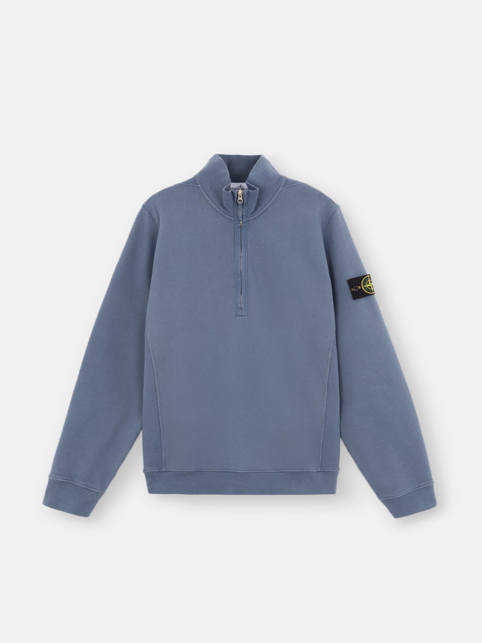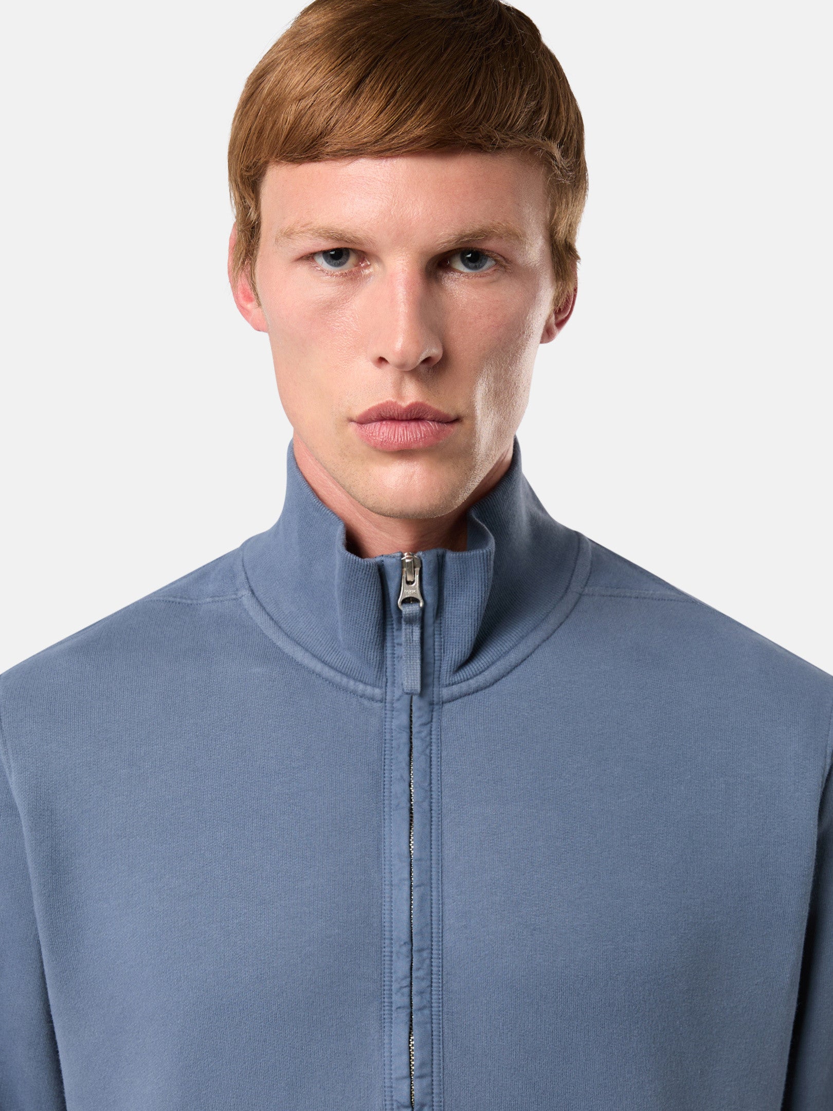 Sweat-shirt à col zippé en coton biologique molletonné gratté doté d’un col montant, de bandes latérales côtelées en coton et de détails côtelés. Modèle teint en pièce.