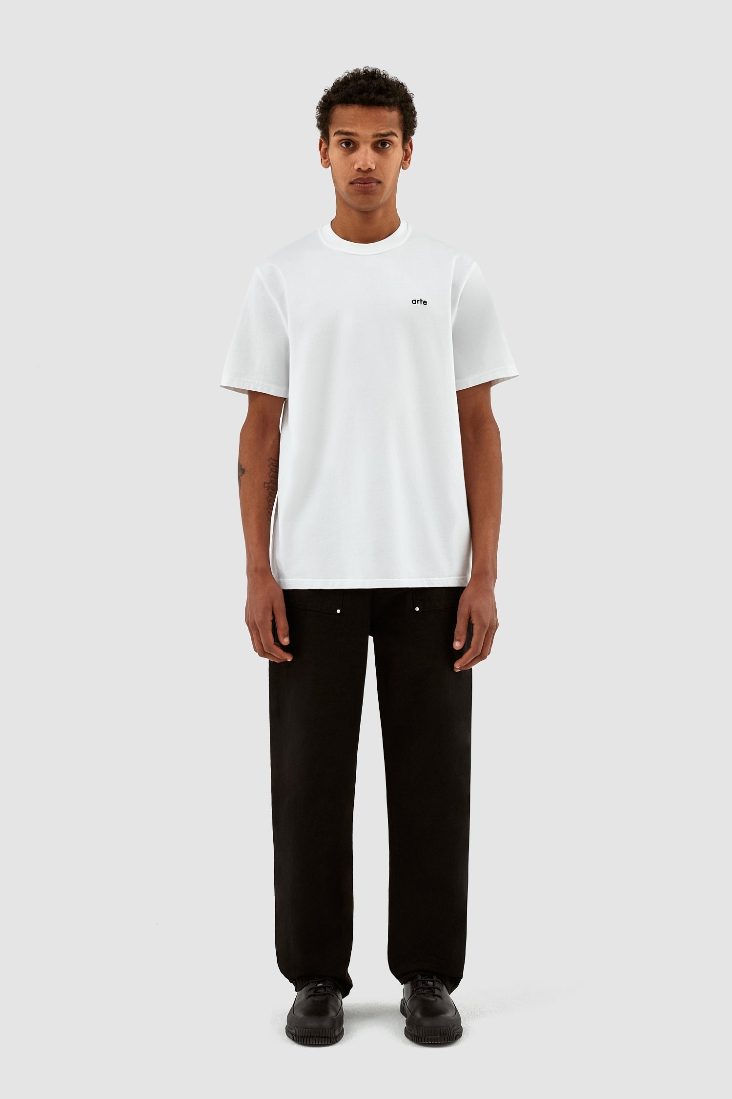 Le t-shirt Tommy Back Logo en blanc est l'interprétation de cette saison du t-shirt graphique emblématique d'Arte. Confectionné en coton de qualité supérieure, ce t-shirt présente un imprimé saisonnier graphique au dos ainsi que le logo Arte brodé sur le côté gauche de la poitrine. Il présente un col légèrement plus haut et une coupe décontractée.