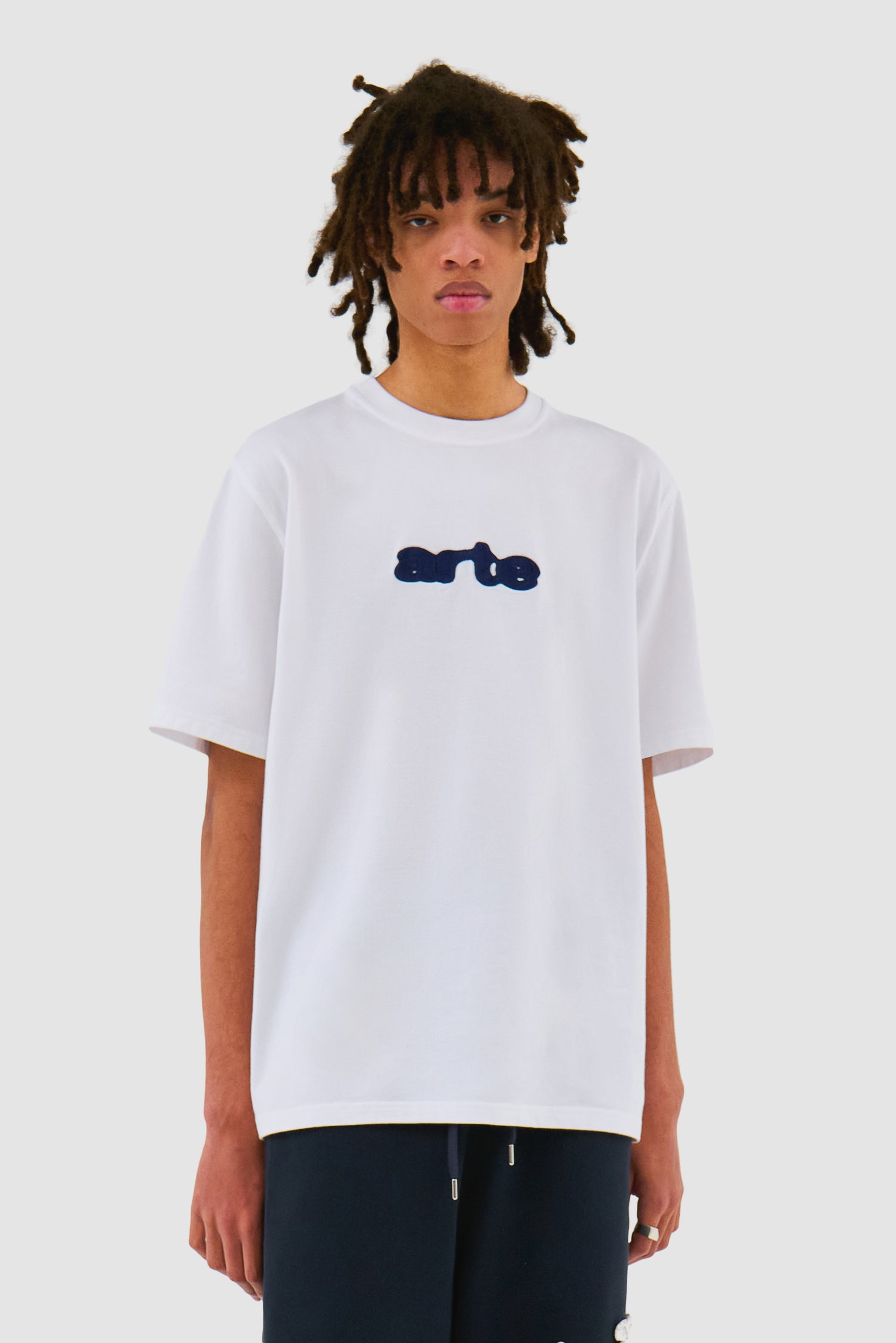 Le t-shirt Blur Embroidery en blanc est orné du logo Arte brodé sur le devant. Fabriqué en coton épais de première qualité, ce t-shirt est doux au toucher, avec une encolure légèrement plus haute et une coupe décontractée.