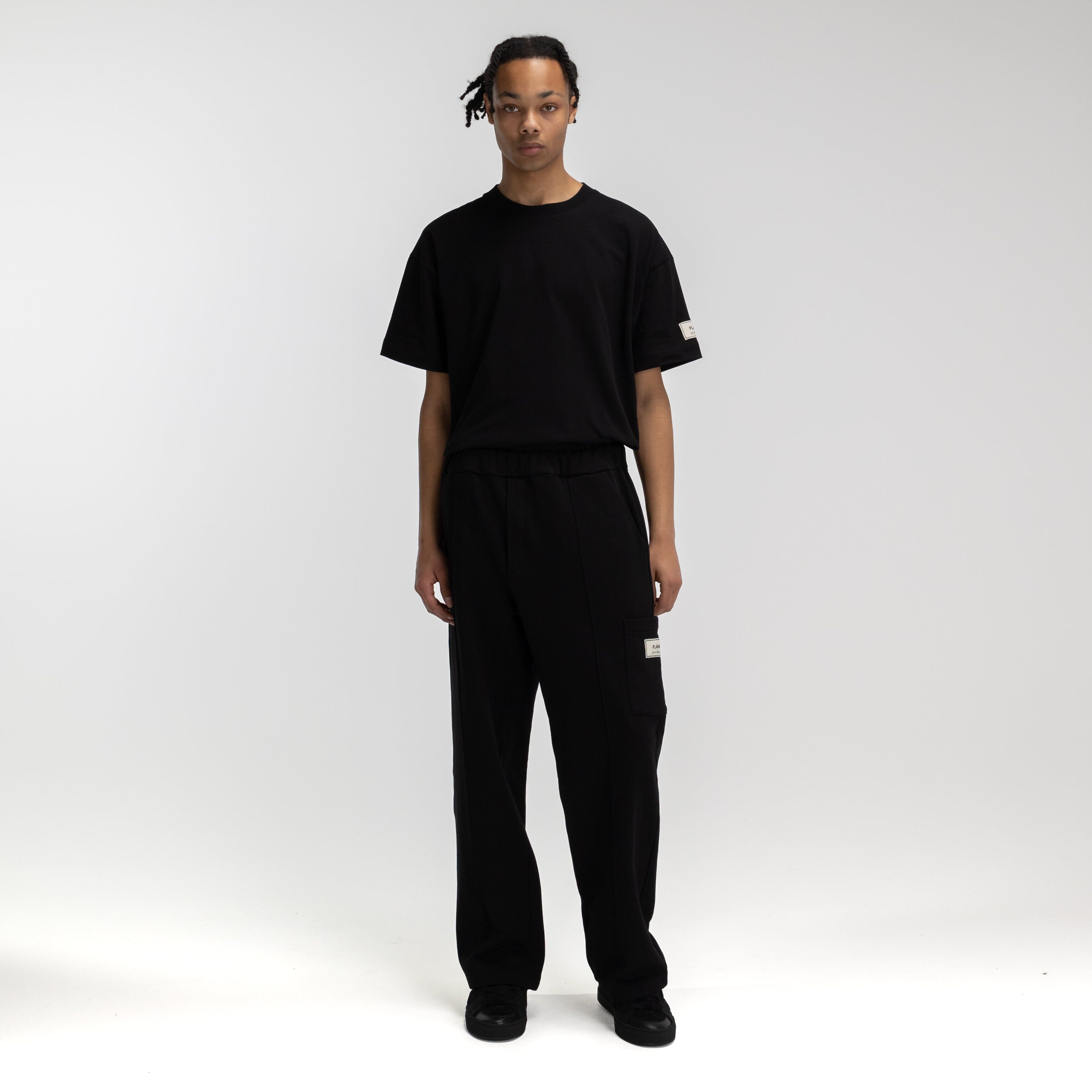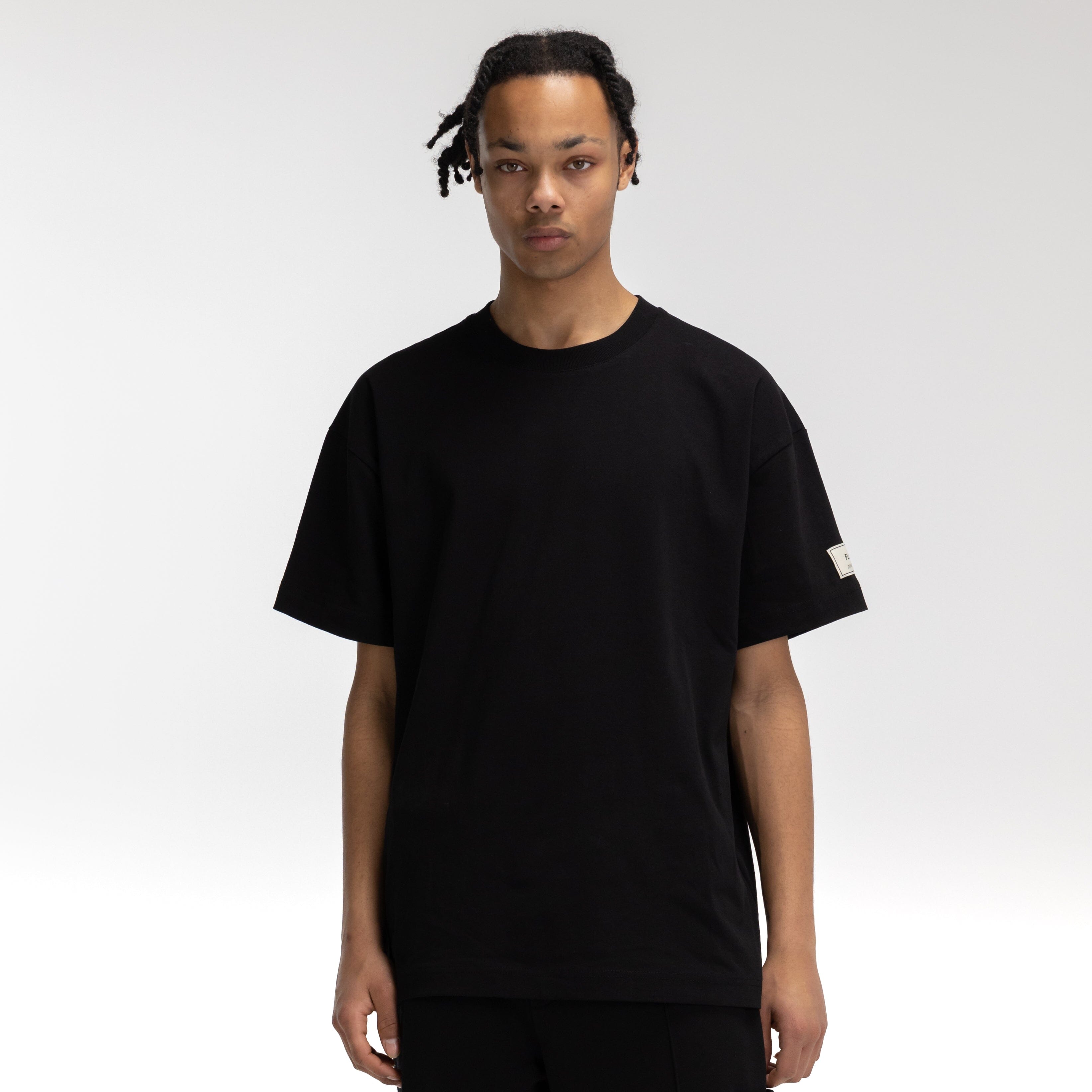 The Atelier T-Shirt Sleeve Emblem exudes an air of timeless allure and understated charm. The sleek black color adds a touch of versatility and sophistication. Created from the finest materials, expertly tailored to perfection. The distinguished sleeve emblem, meticulously embroidered with the 'Flâneur' brand's iconic emblem, adds a subtle touch of exclusivity.