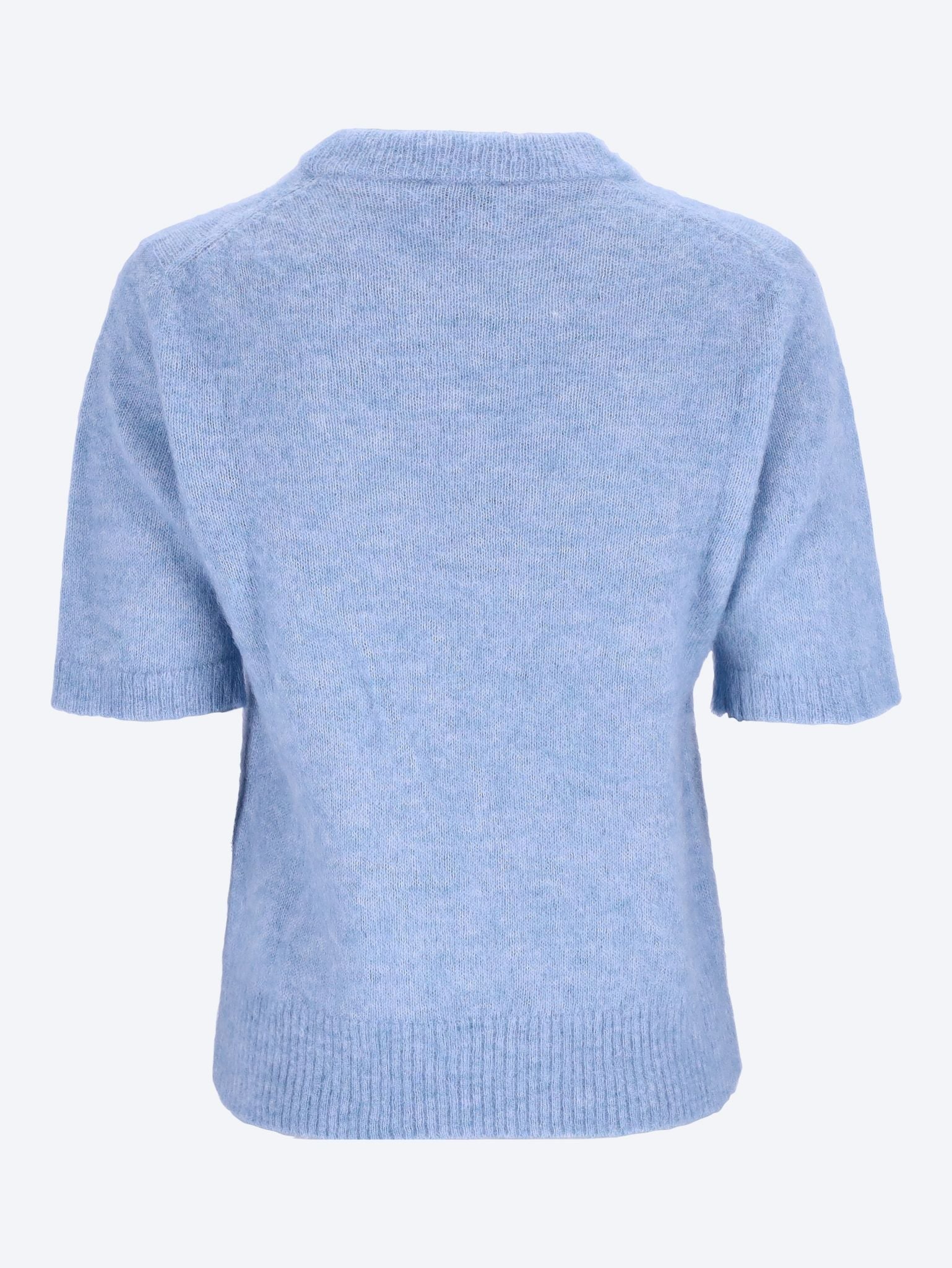 Pull GANNI manches courtes en alpaca brossé fin bleu ciel avec chiots