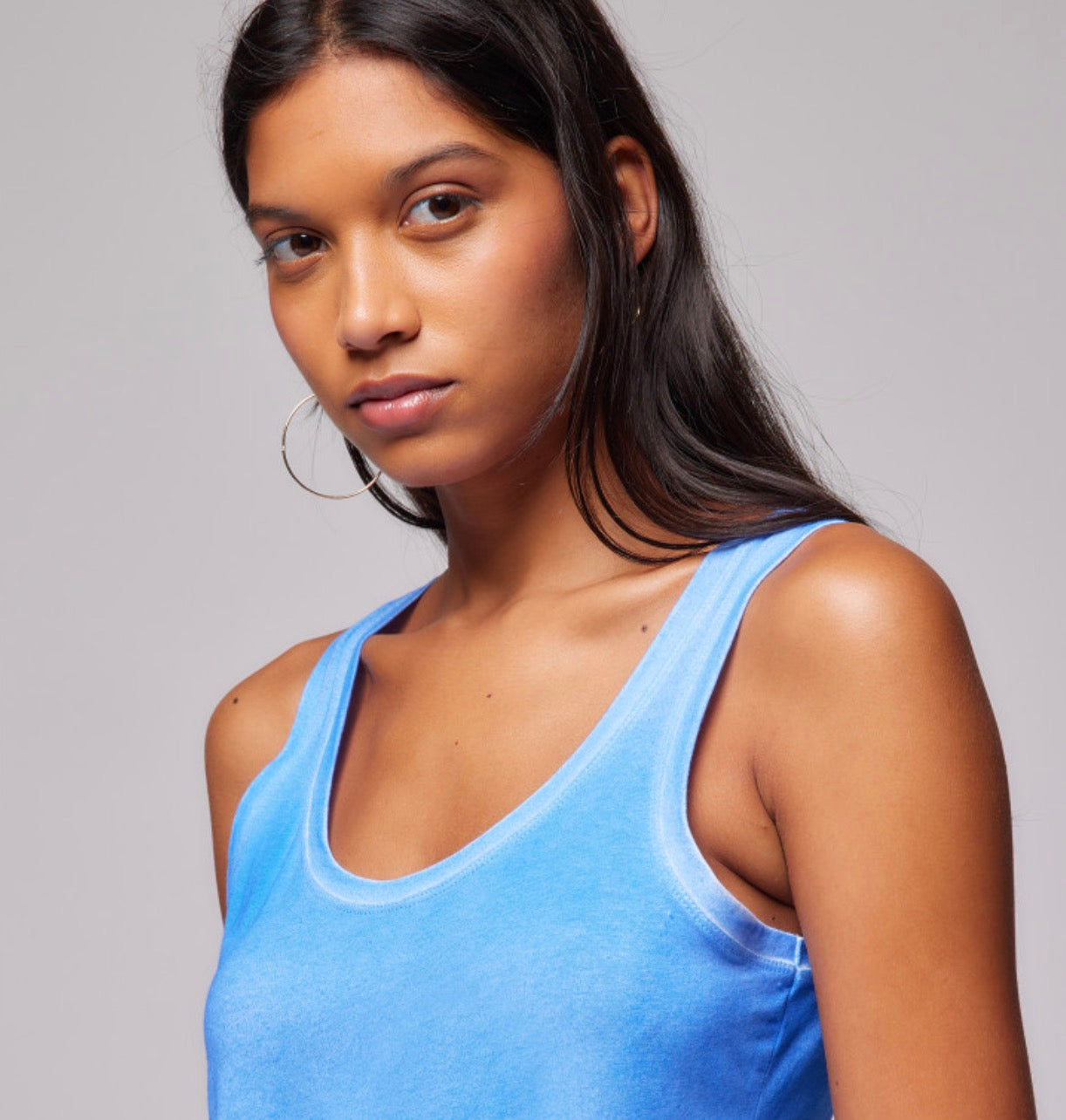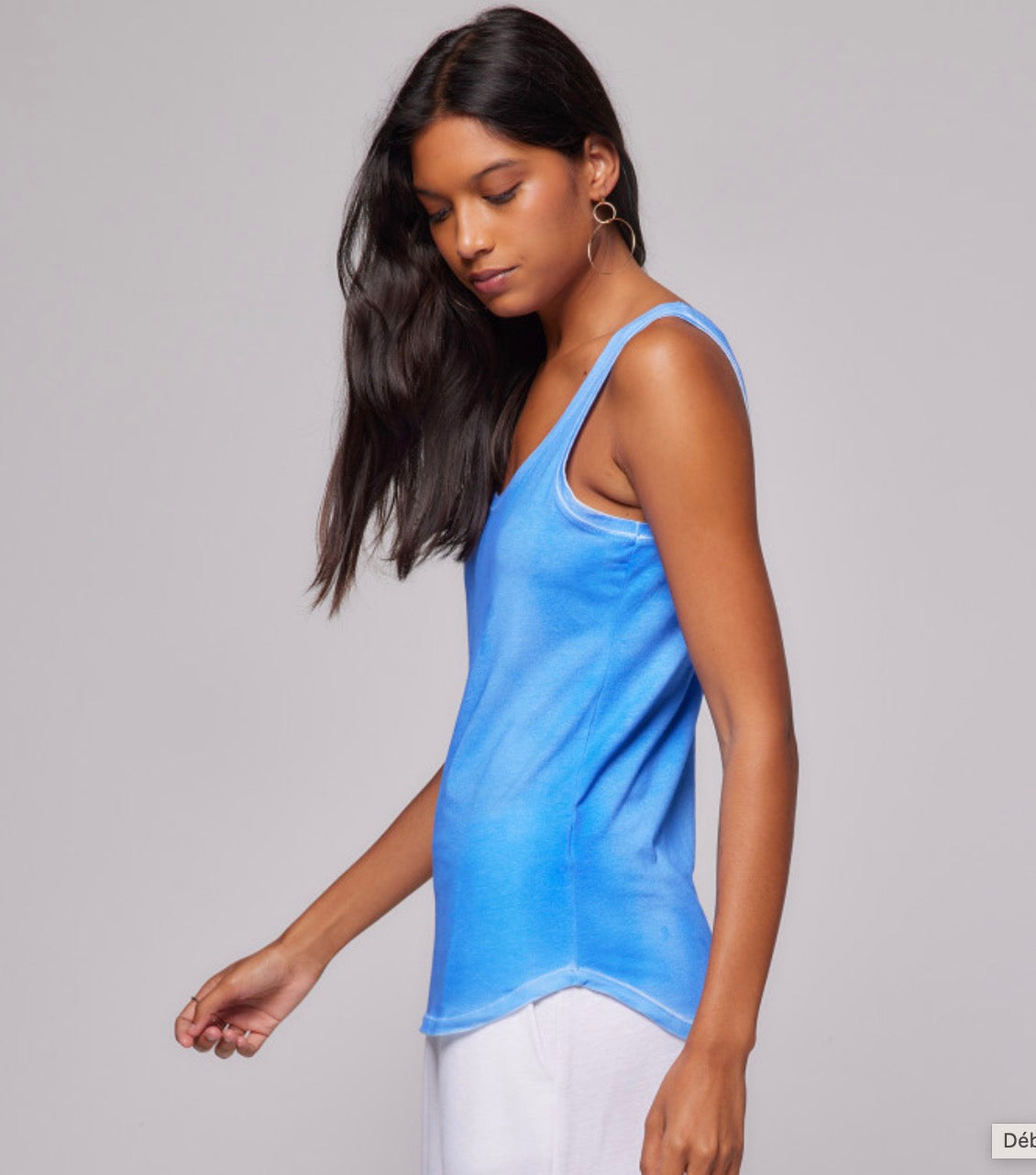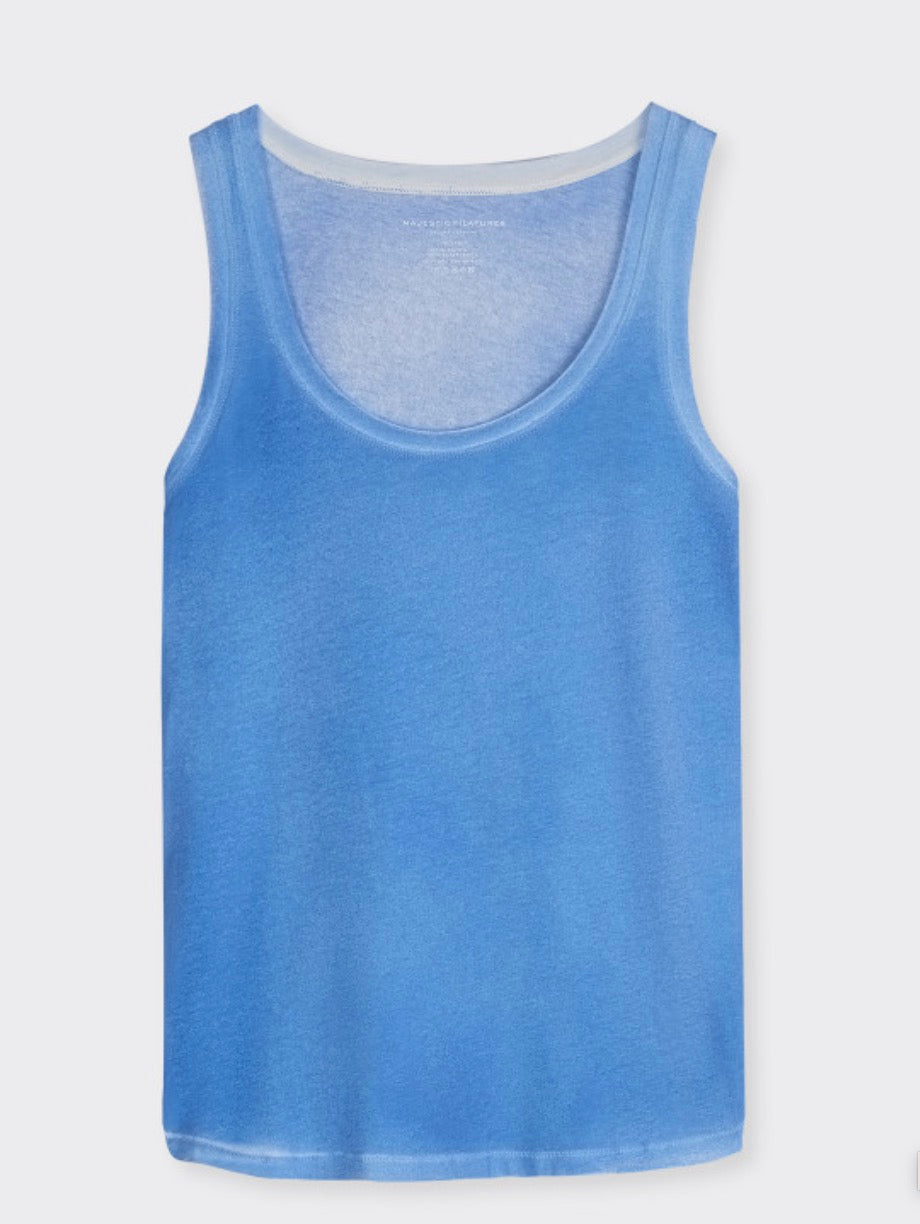 Débardeur bleu méditerranée en Coton et Élasthanne. Col U. Teinture artisanale.