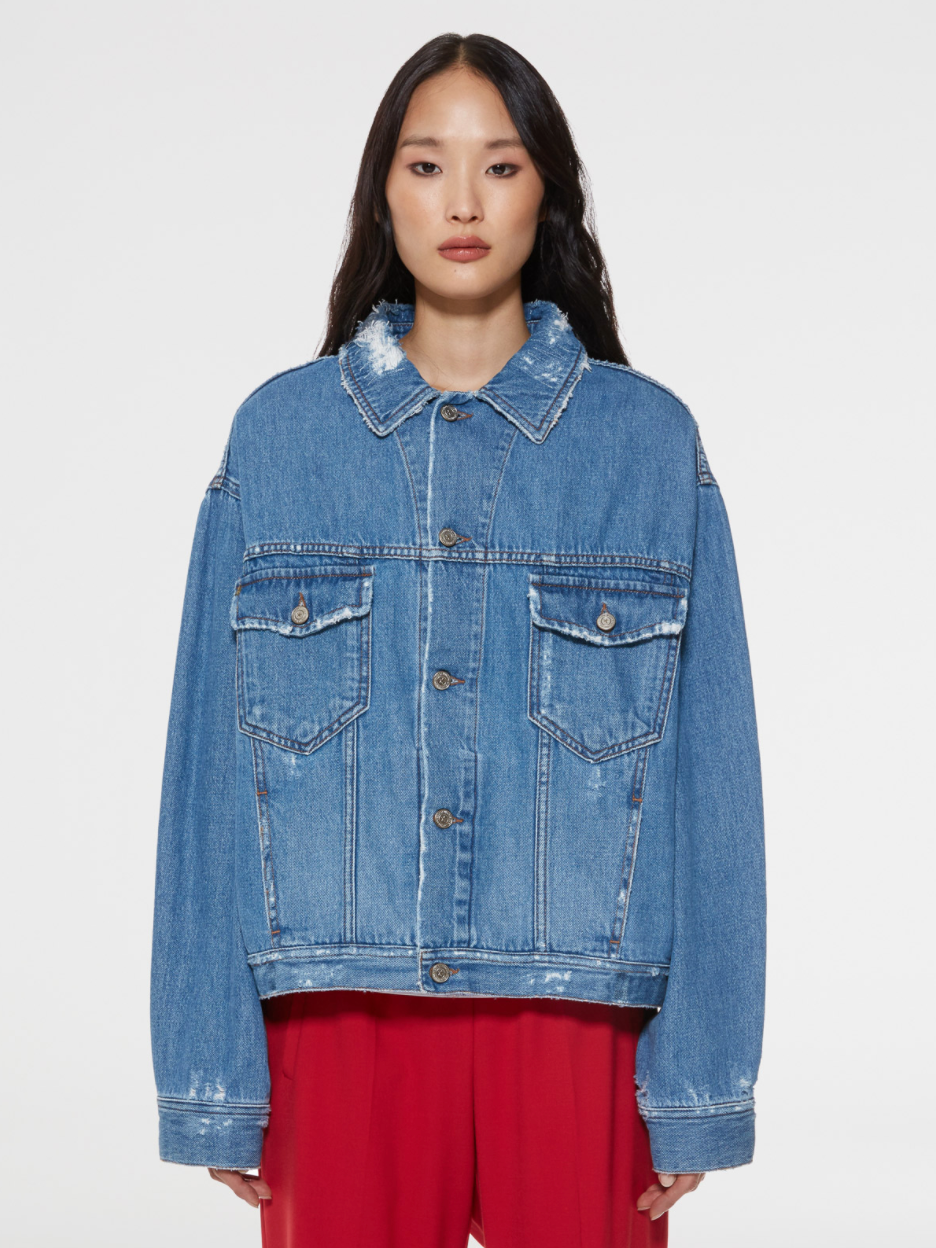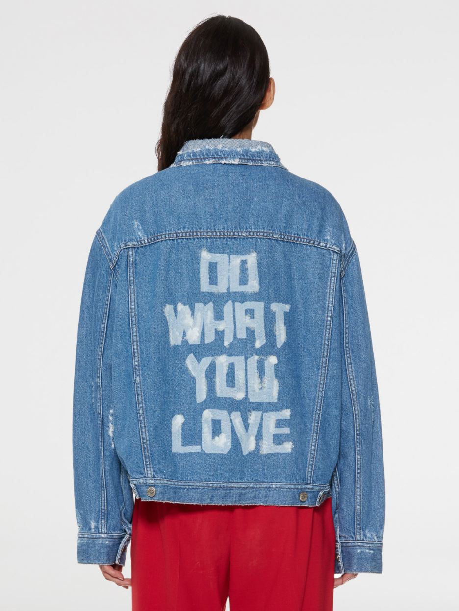 Une pièce intemporelle rehaussée de détails inattendus. Cette veste Babette en denim à délavage moyen se distingue par sa coupe oversize et son inscription blanche contrastée au dos. Do what you love.